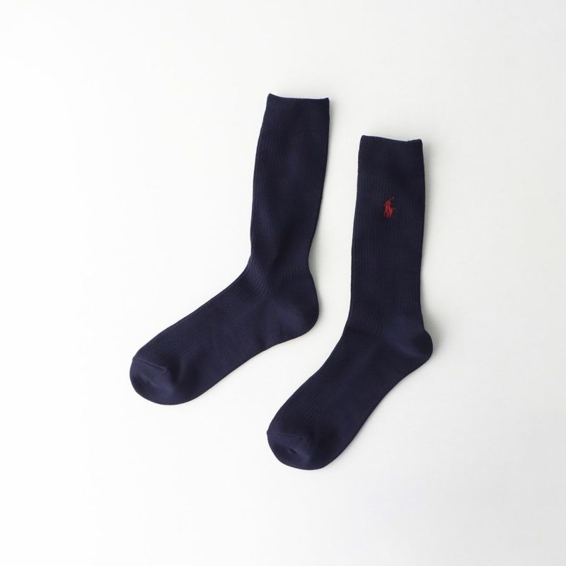 5. POLO RALPH LAUREN 消臭加工 綿混 ワンポイント刺繍 リブ クルー丈 メンズソックス 【22-24cm】 【24-26cm】【26-28cm】 02032303