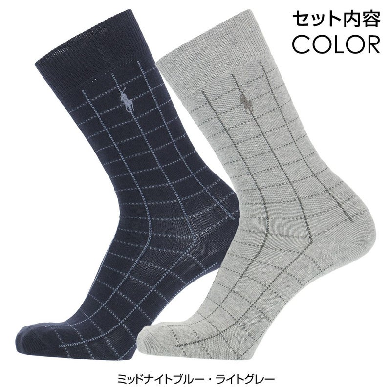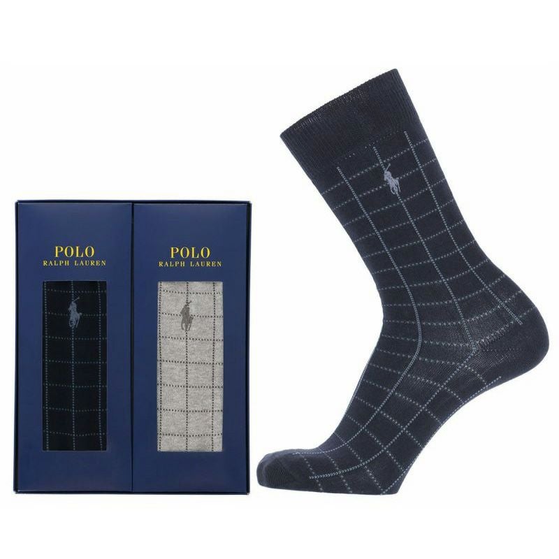 POLO RALPH LAUREN 2足セット 箱入り ギフトセット 日本製 綿混 ワンポイント刺繍 格子柄 クルー丈 メンズ ソックス 02092178 ( PLC-20C ) giftset プレゼント