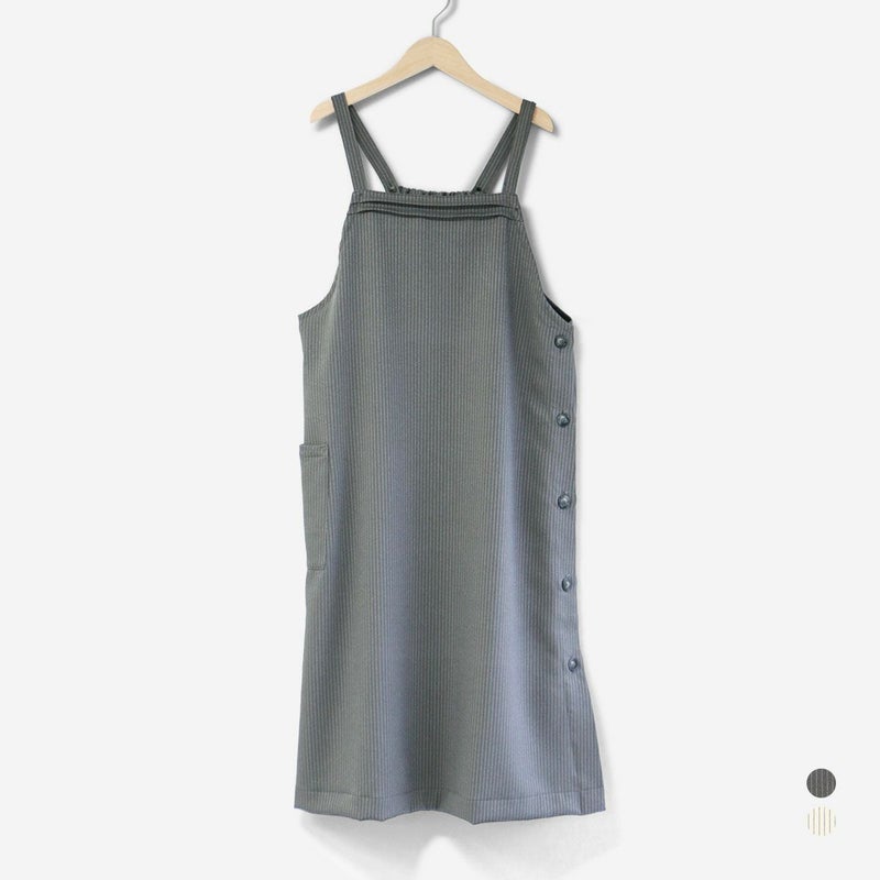 楽ちんなのにキレイ見え。ちょっとした外出時に HOUSE WEAR STUDIO PLUS ハウス ウェア スタジオ プラス ONE MILE WEAR ワンマイルウェア 日本製 ポリエステルストライプ ジャンパースカート ワンピース レディース 70360036