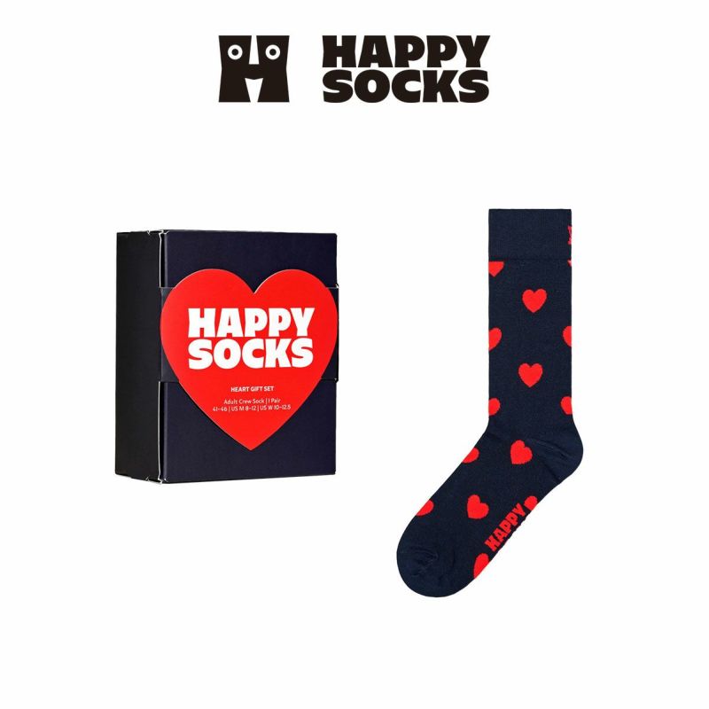 MAIN SOCKS クルー丈のベーシックシリーズモデル・ギフトBOX付き、バレンタイン、ID:P000867 1-Pack Heart Sock Gift Set(靴下の色はネイビーです。)