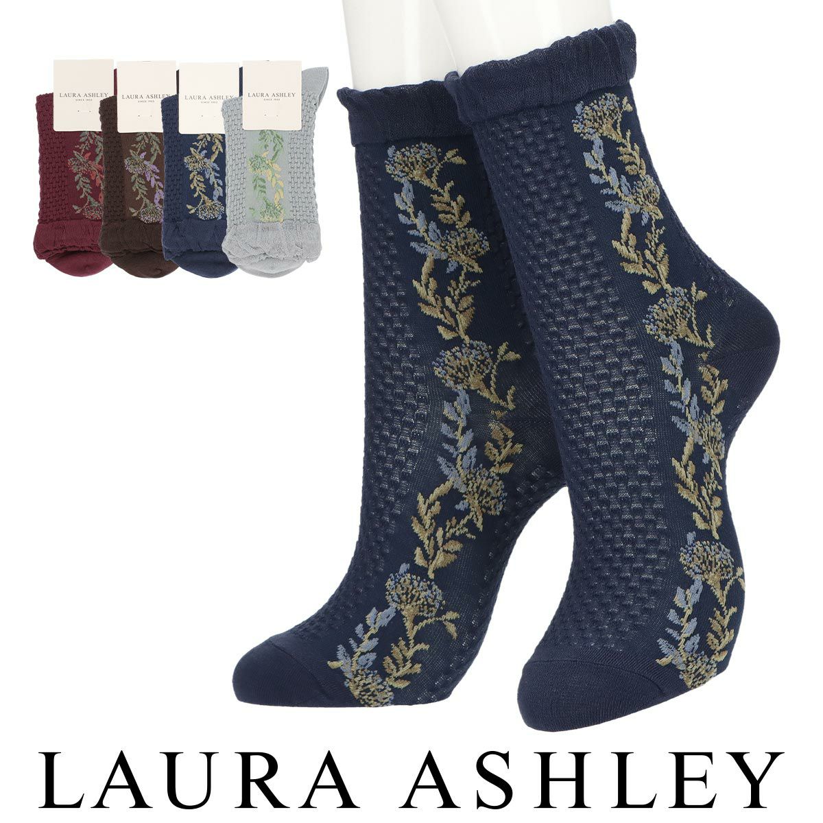 ローラ アシュレイ Laura Ashley 靴下 部屋履き ルームソックス 冬 ★LAURA ASHLEY 内起毛 総パイル 毛混クルー丈 ルームソックス マグノリアグローブ柄 レディース 03358703