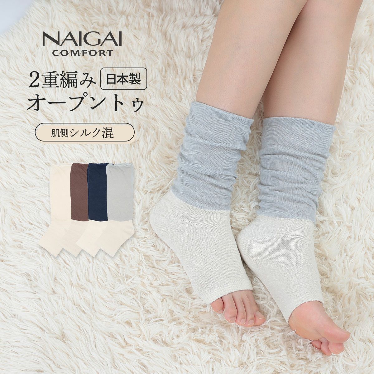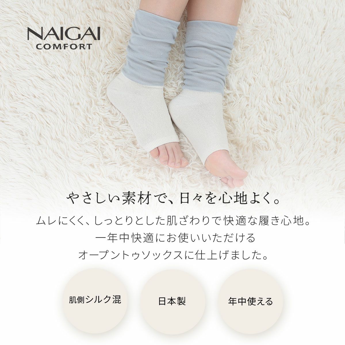 ナイガイ コンフォート 綿・絹 コットン・シルク混 足首の冷えに 空調対策 トゥーレス ソックス NAIGAI COMFORT ふんわり 肌側シルク ナイトソックス オープントゥ トゥーレス ルームソックス 日本製 レディース 93072343