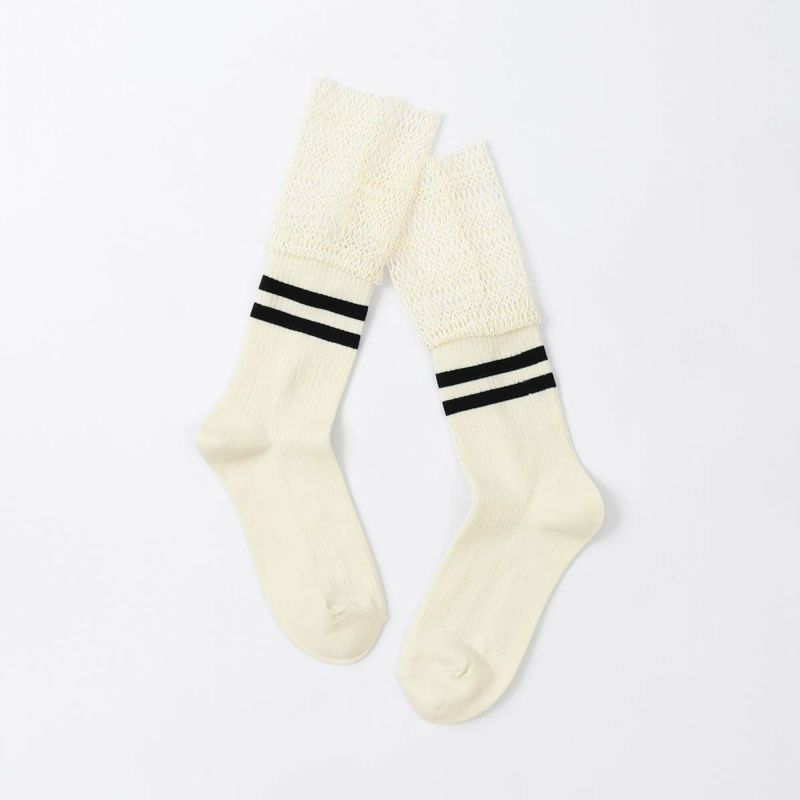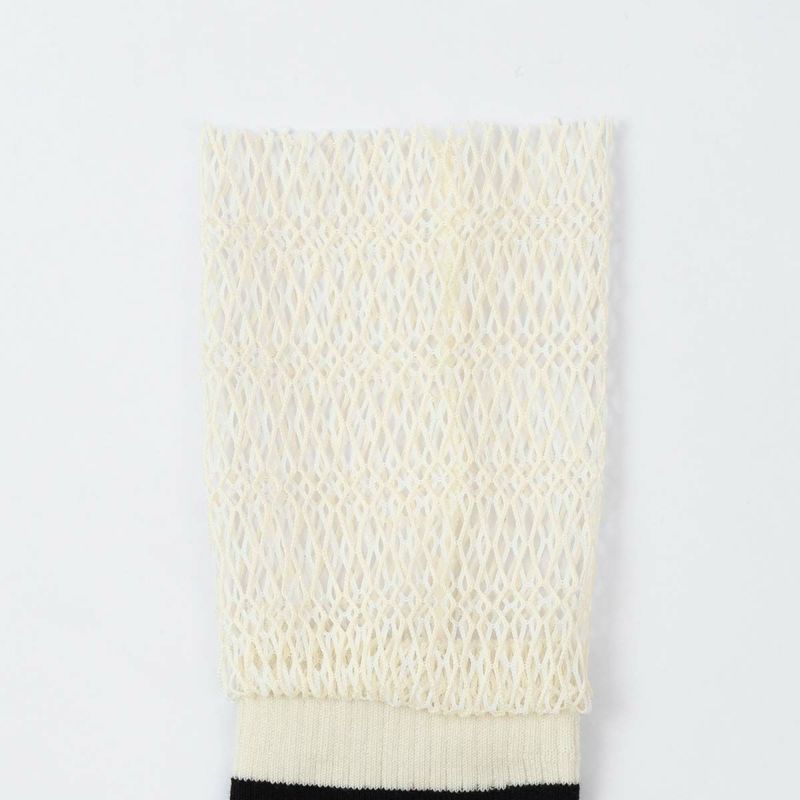 履き口にメッシュが施されたラインソックス。カジュアルにもキレイめにもあう個性的なデザインです。
