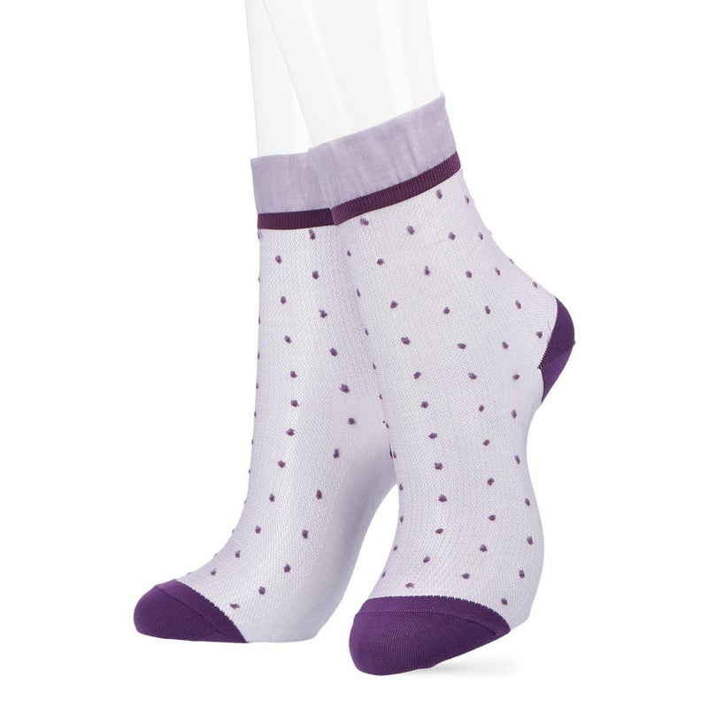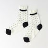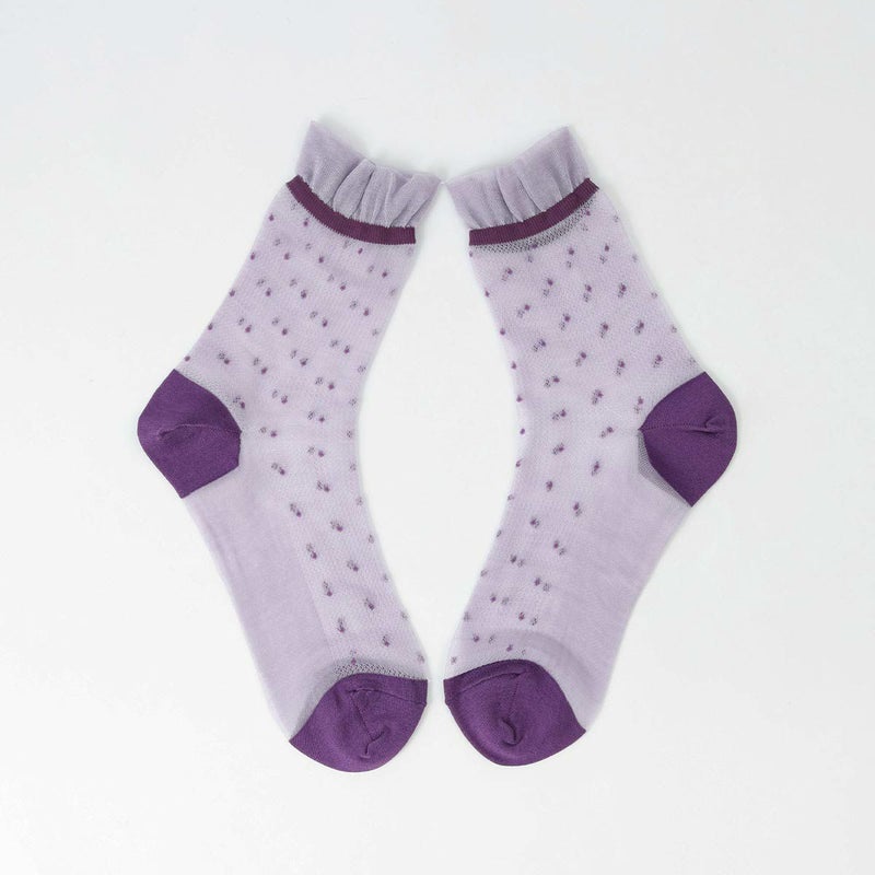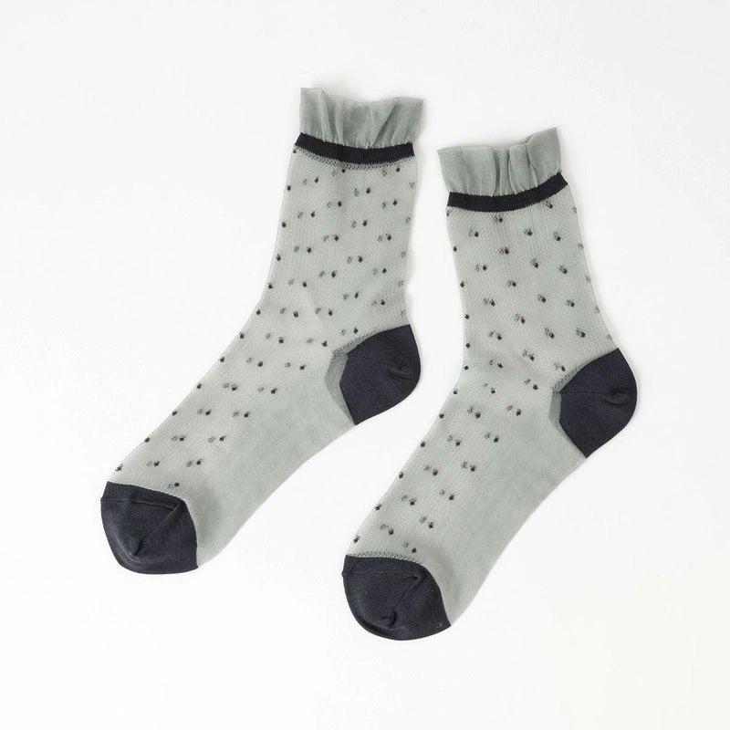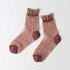 レトロなドット柄に履き口のフリルが可愛いデザインの靴下です。