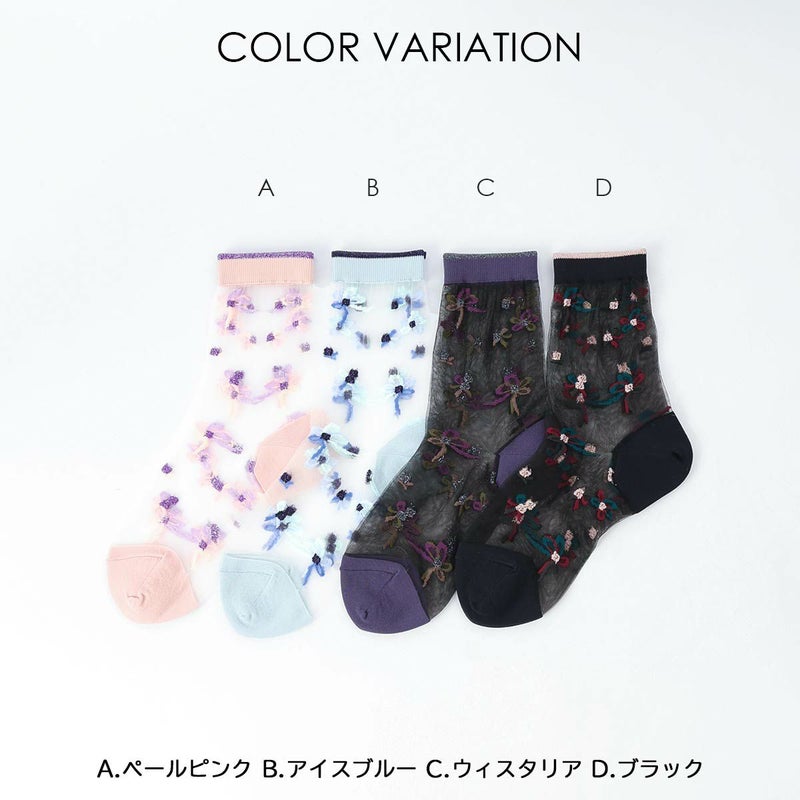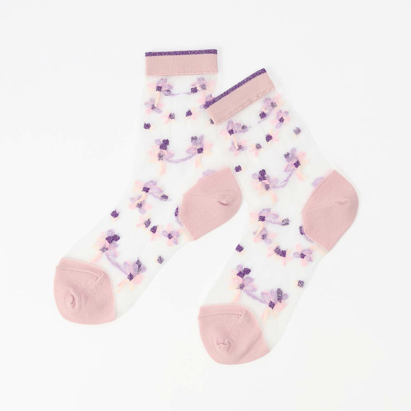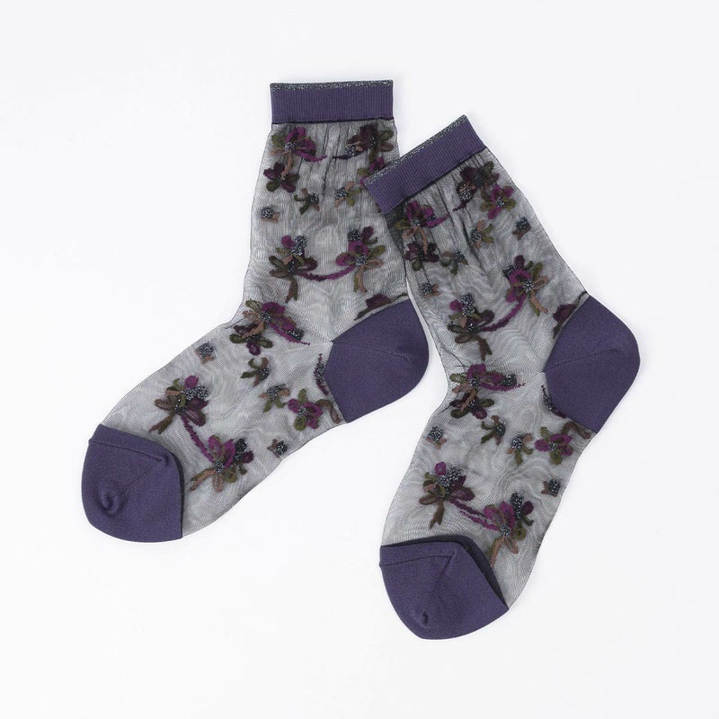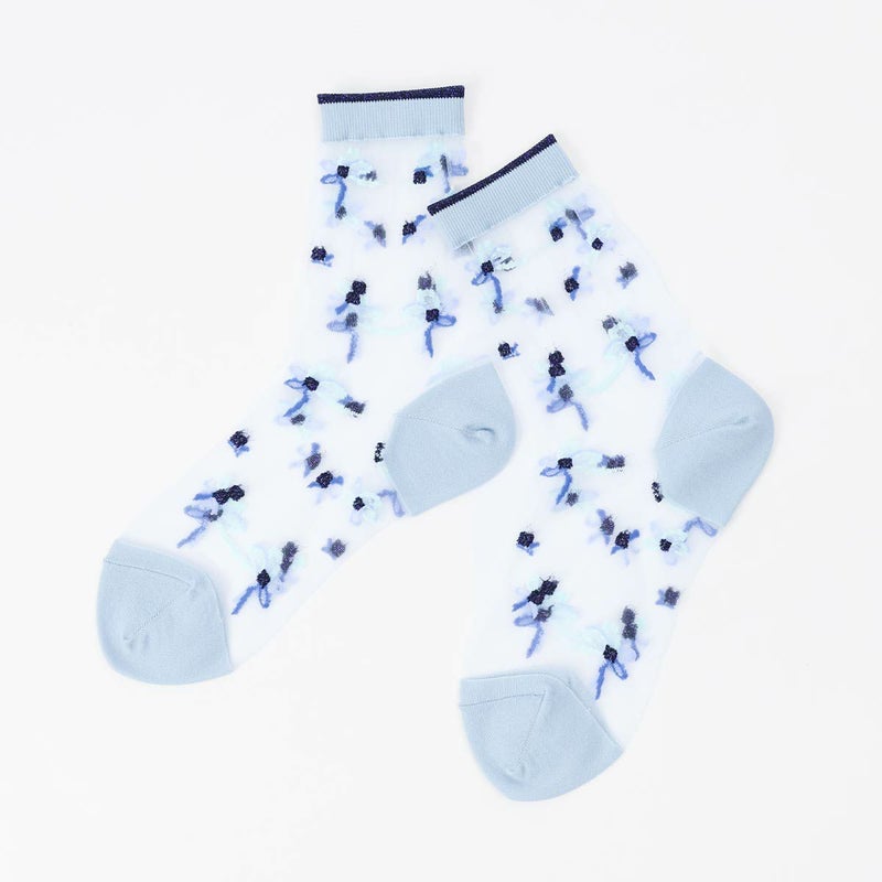 テグス糸を使用し、軽やかでエアリーな印象を与えてくれます。足元にさりげない華やかさをプラスするデザインで、パンプスやバレエシューズとの相性も抜群。フェミニンなスタイリングにぴったりの一足です。柔らかな肌触りで履き心地も快適。デイリーから特別な日まで幅広く活躍してくれる、上品さと可憐さを兼ね備えたアイテムです。