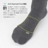 独自の「Anti Spread Foot機能」で横アーチを支え、足幅の広がりを防止します。また、足の形に沿った左右設計により、爪先の縮こまりを軽減します。