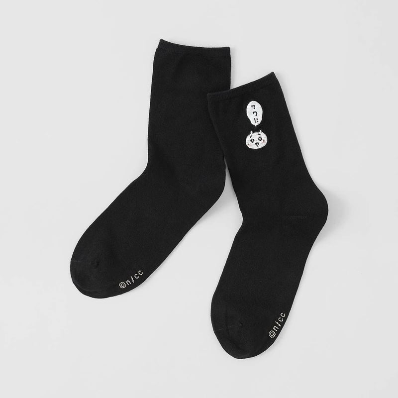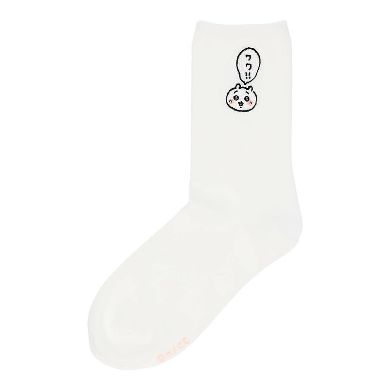ちいかわのシンプルな刺繍のワンポイントソックス。ワワ!!の吹き出し付き。お誕生日のお祝いやプレゼント、プチギフトにもおすすめ!
