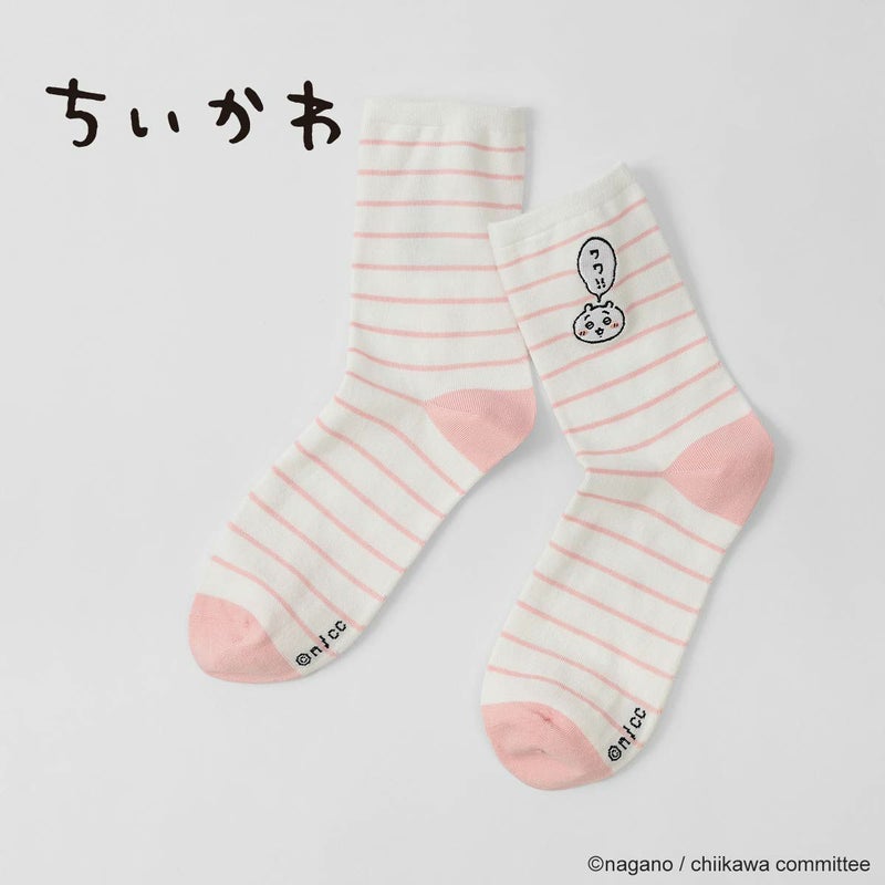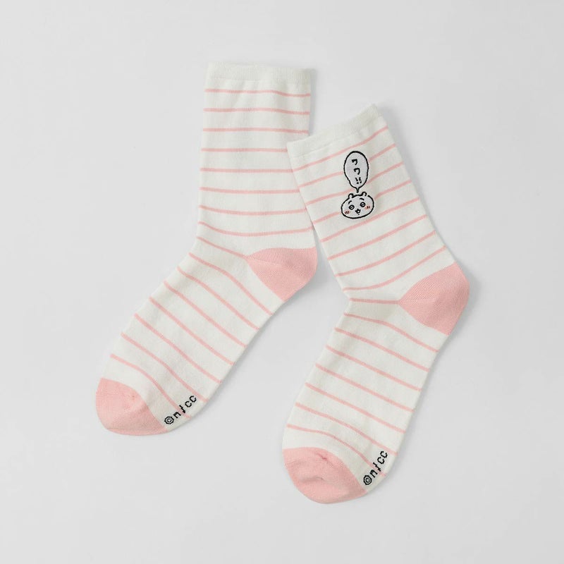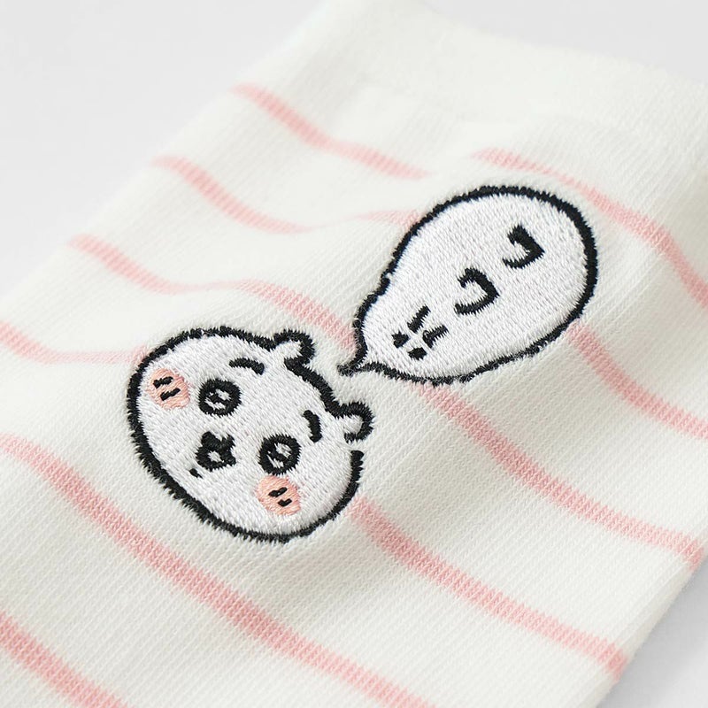 ちいかわ ソックス ボーダー 「ワワ!!」 ワンポイントちいかわ刺繍 クルー丈 レディース 【365日最短翌日発送】 03197022