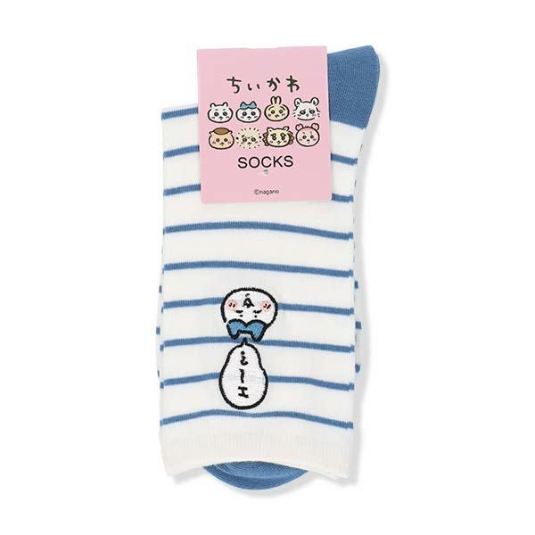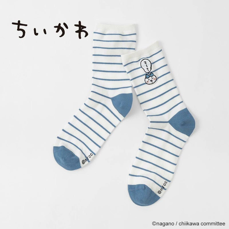 ちいかわ ソックス ボーダー 「エ~?」 ワンポイント ハチワレ刺繍 クルー丈 レディース 【365日最短翌日発送】 03197024