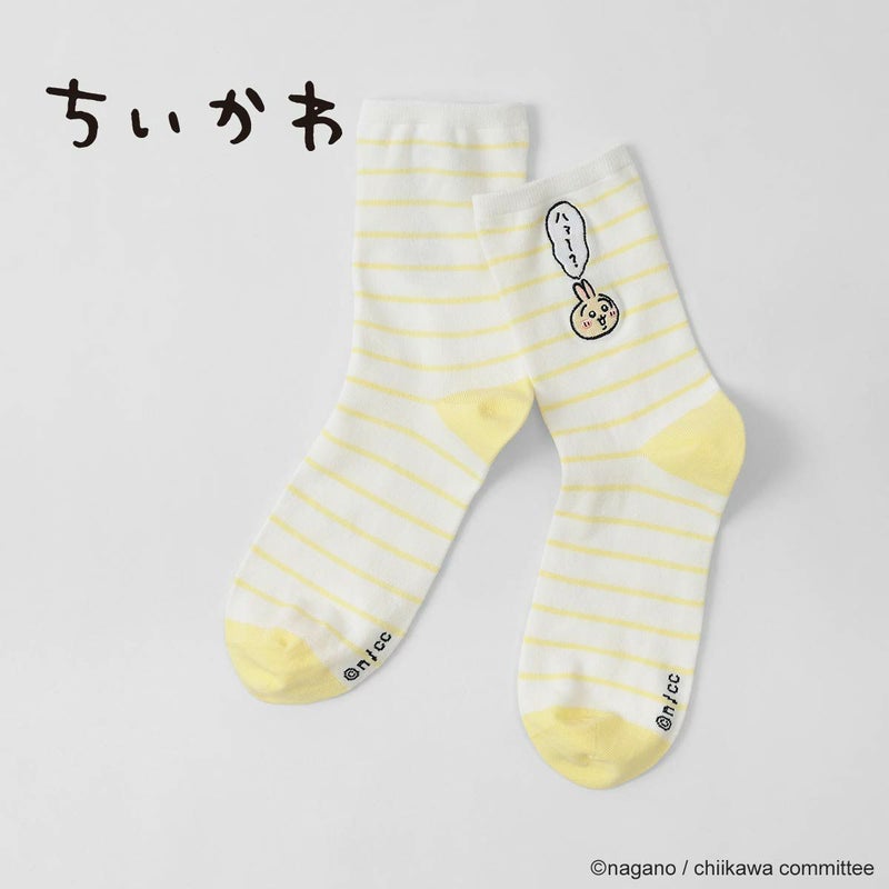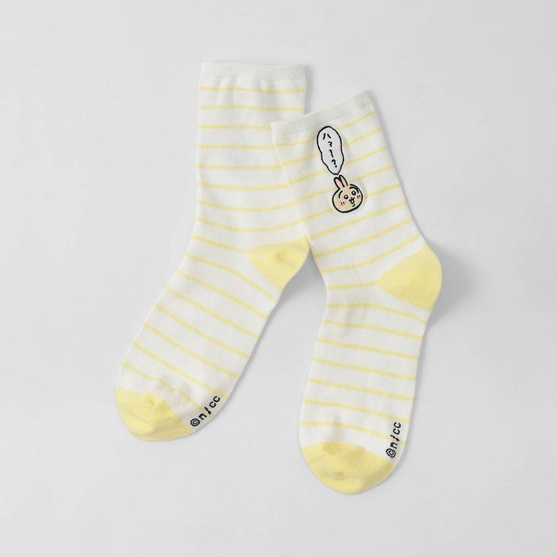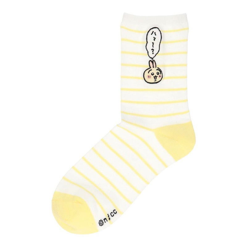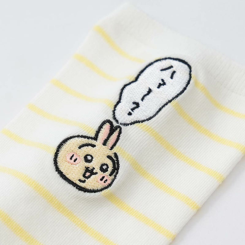 ちいかわ ソックス ボーダー 「ハァ~?」 ワンポイント うさぎ刺繍 クルー丈 レディース 【365日最短翌日発送】 03197026