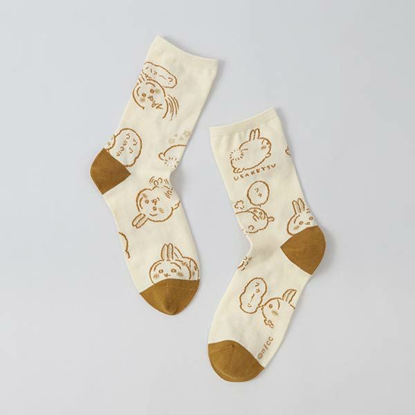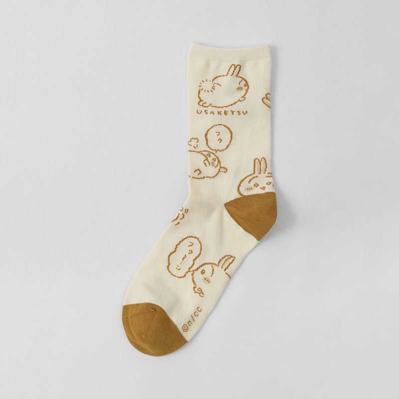 表情豊かなうさぎの総柄ソックス。やわらかなカラーリングがかわいいです。お誕生日のお祝いやプレゼント、プチギフトにもおすすめ!