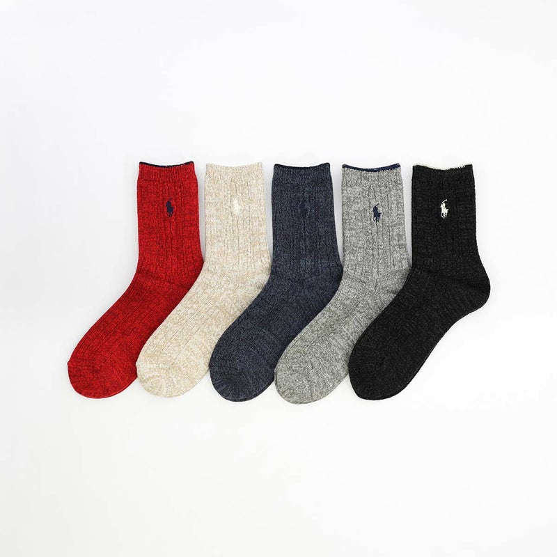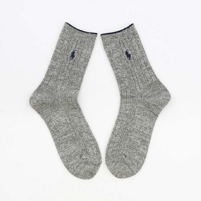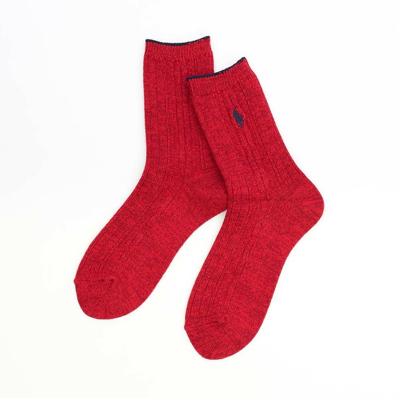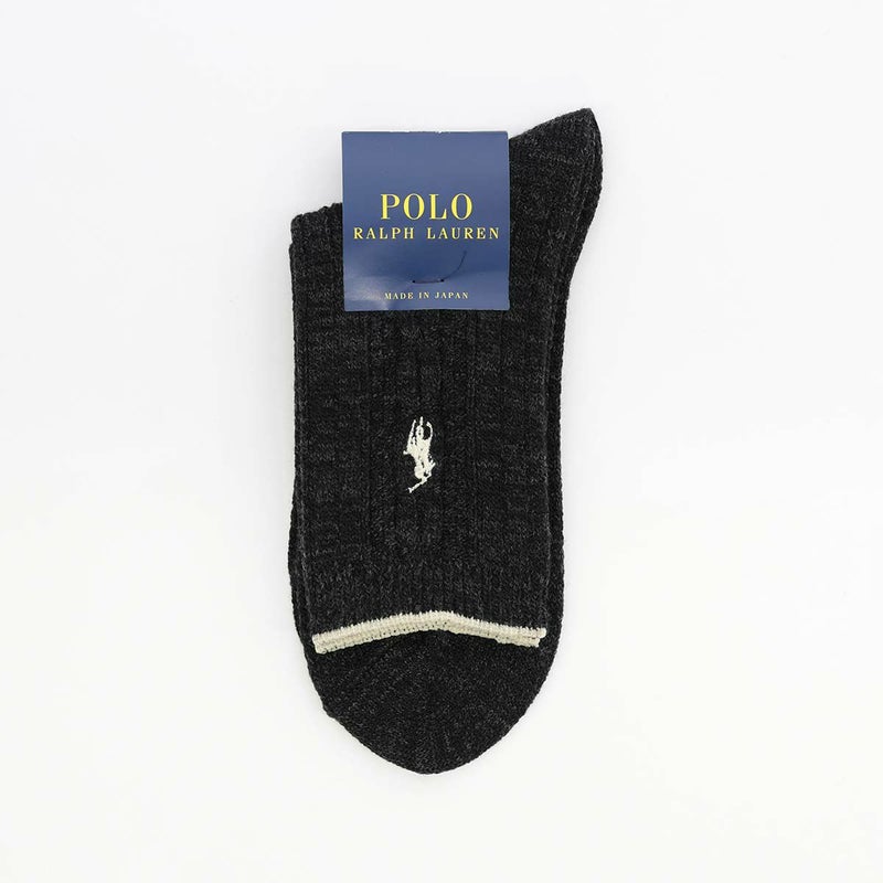 5. POLO RALPH LAUREN 毛混リブ ワンポイント刺繍 日本製 クルー丈 レディース ソックス 03208598