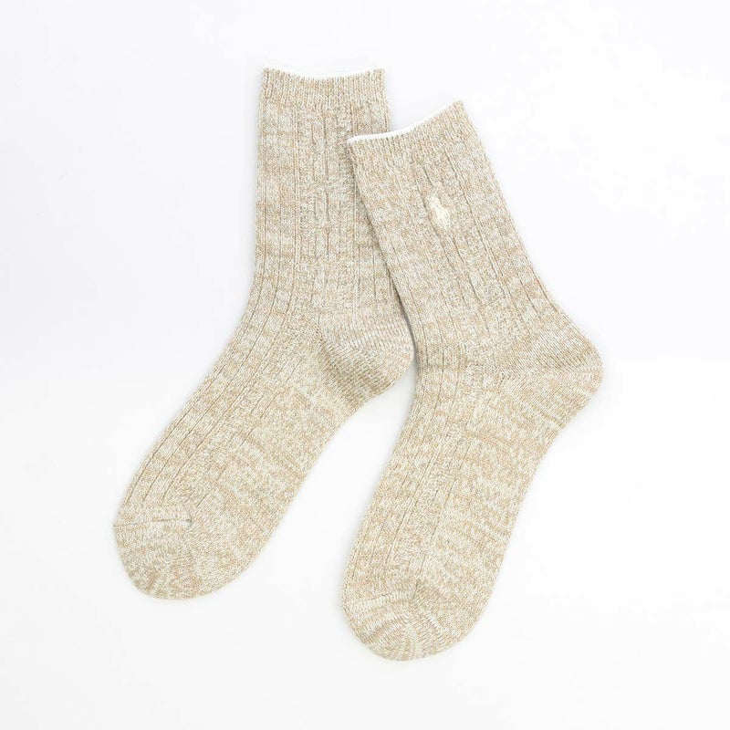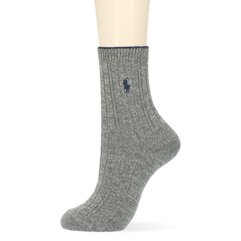 7. POLO RALPH LAUREN 毛混リブ ワンポイント刺繍 日本製 クルー丈 レディース ソックス 03208598