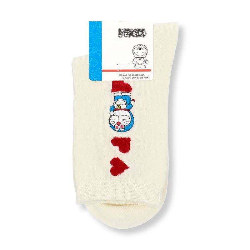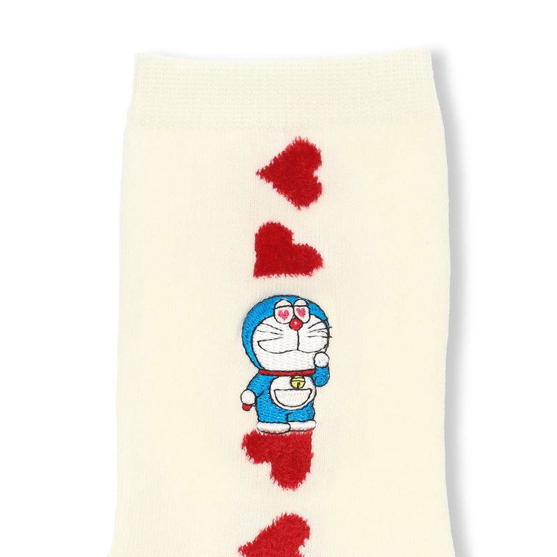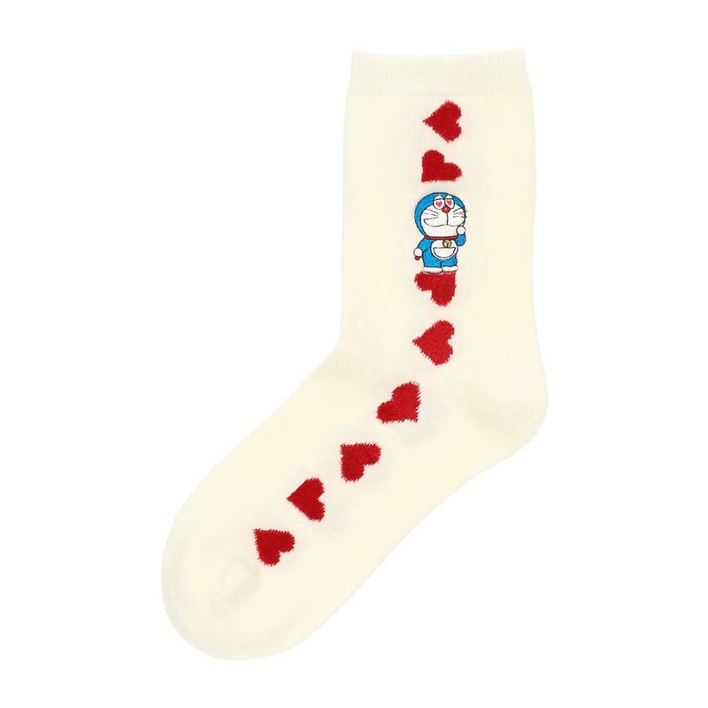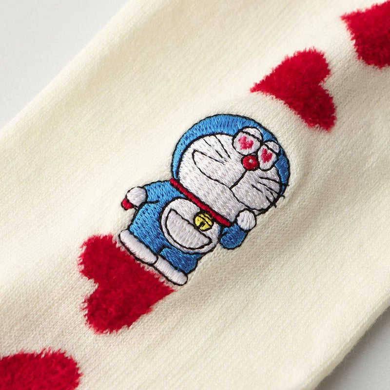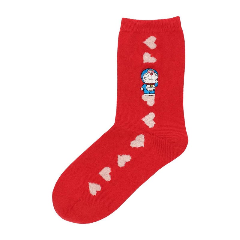 愛らしいドラえもんとハート柄がデザインされたカジュアルソックスです。日常使いはもちろん、プレゼントにも最適です。