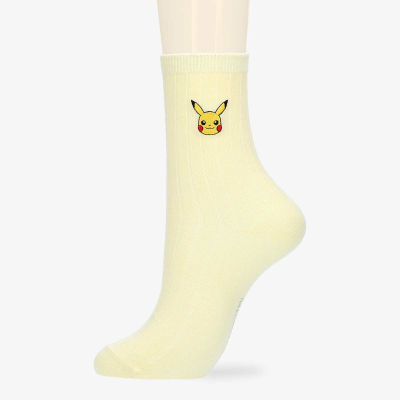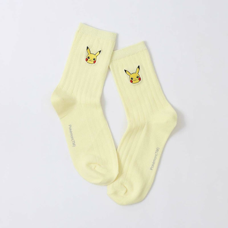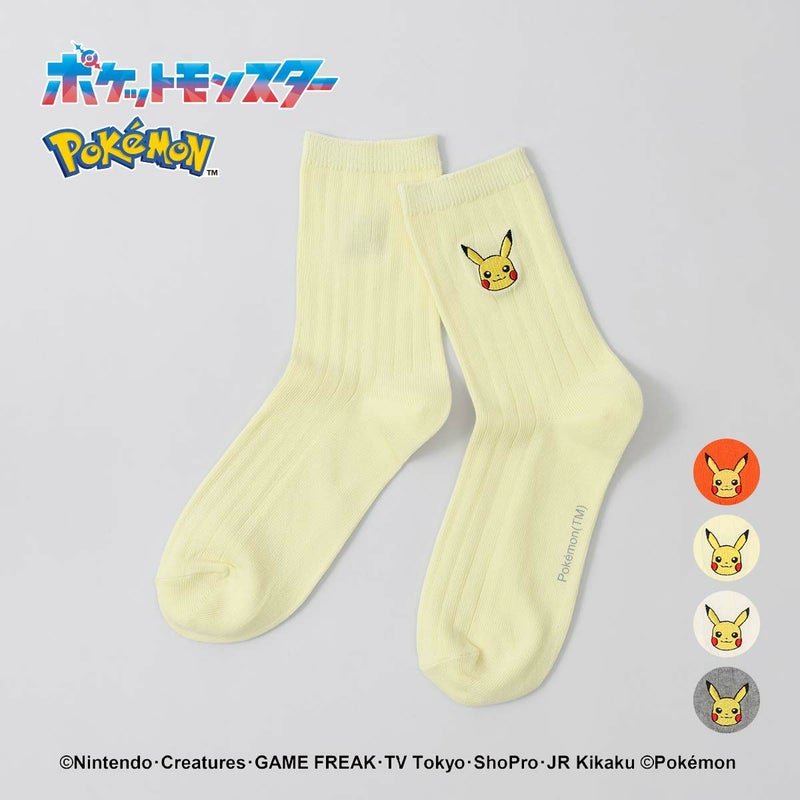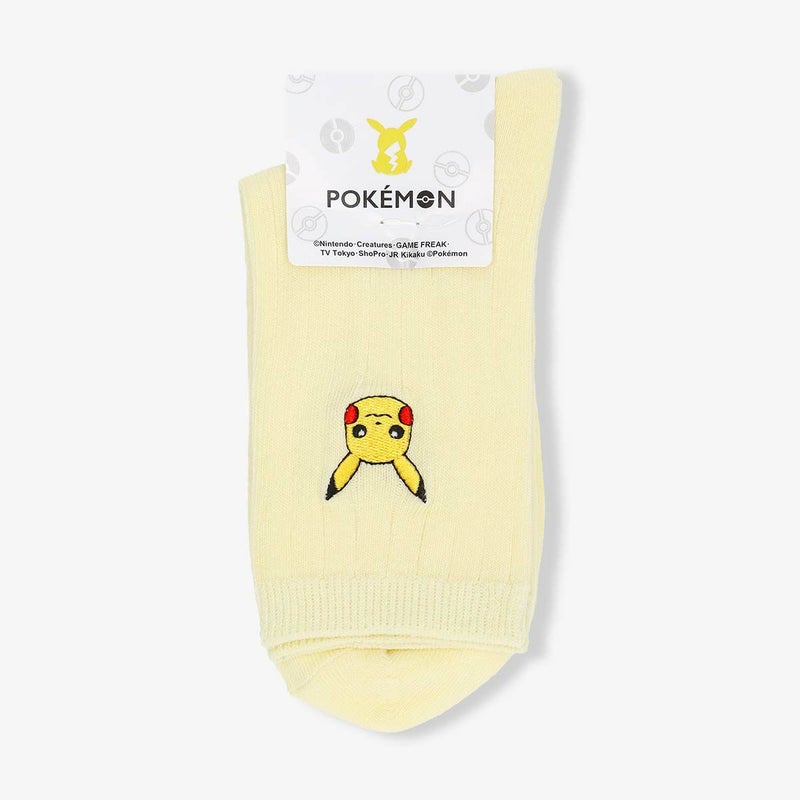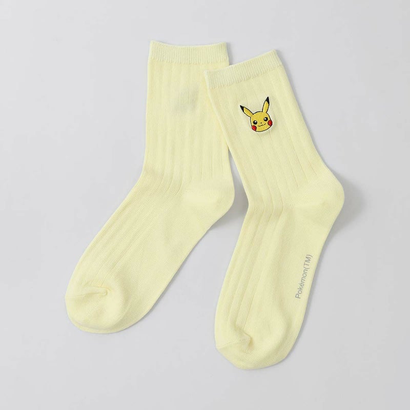ポケモン ピカチュウ ワンポイント刺しゅう リブソックス クルー丈 カジュアル レディース 03307001