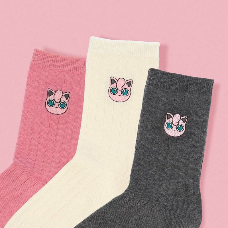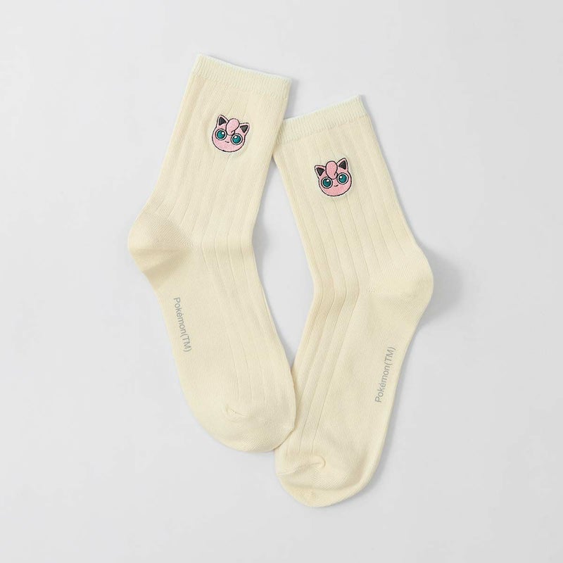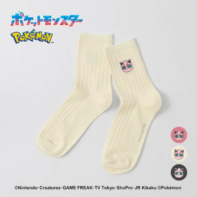 ポケモン プリン ワンポイント刺しゅう リブソックス クルー丈 カジュアル レディース 03307003