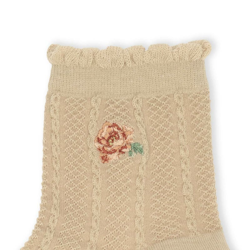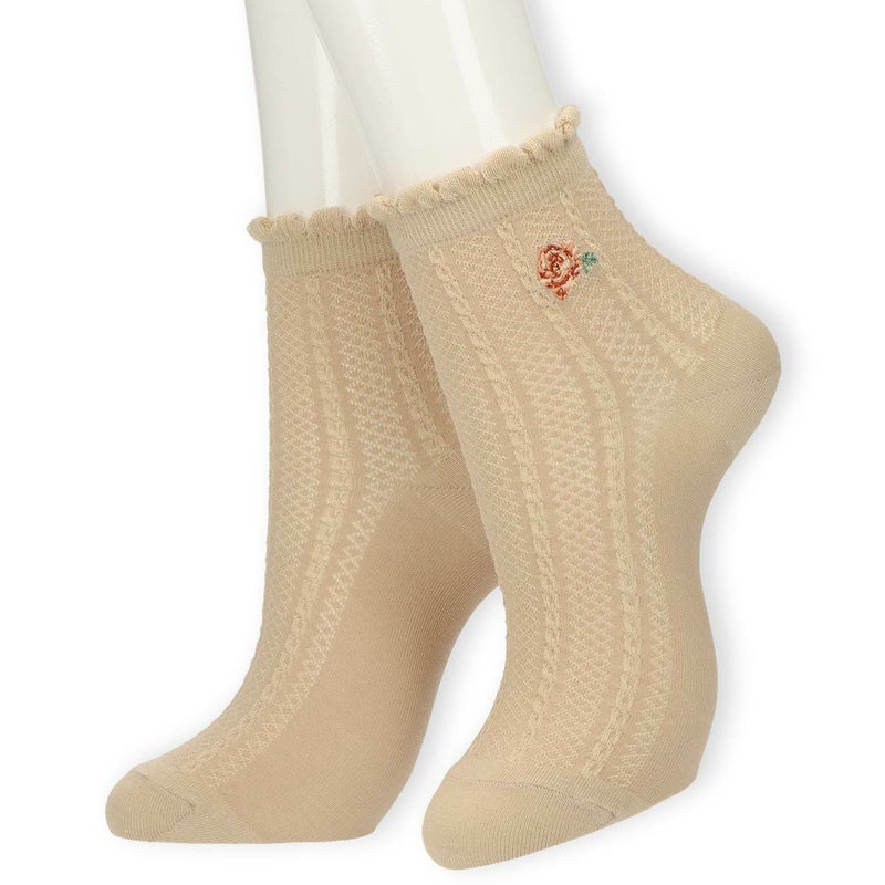 ソフトな口ゴムでやさしくフィット。華やかな刺繍がされたオシャレなソックスです。