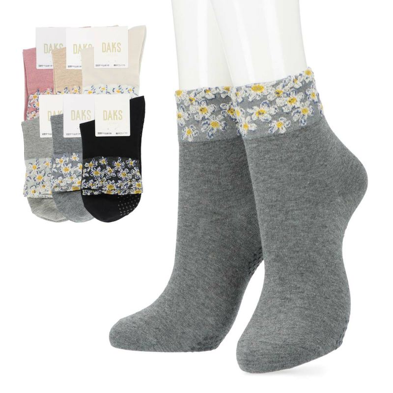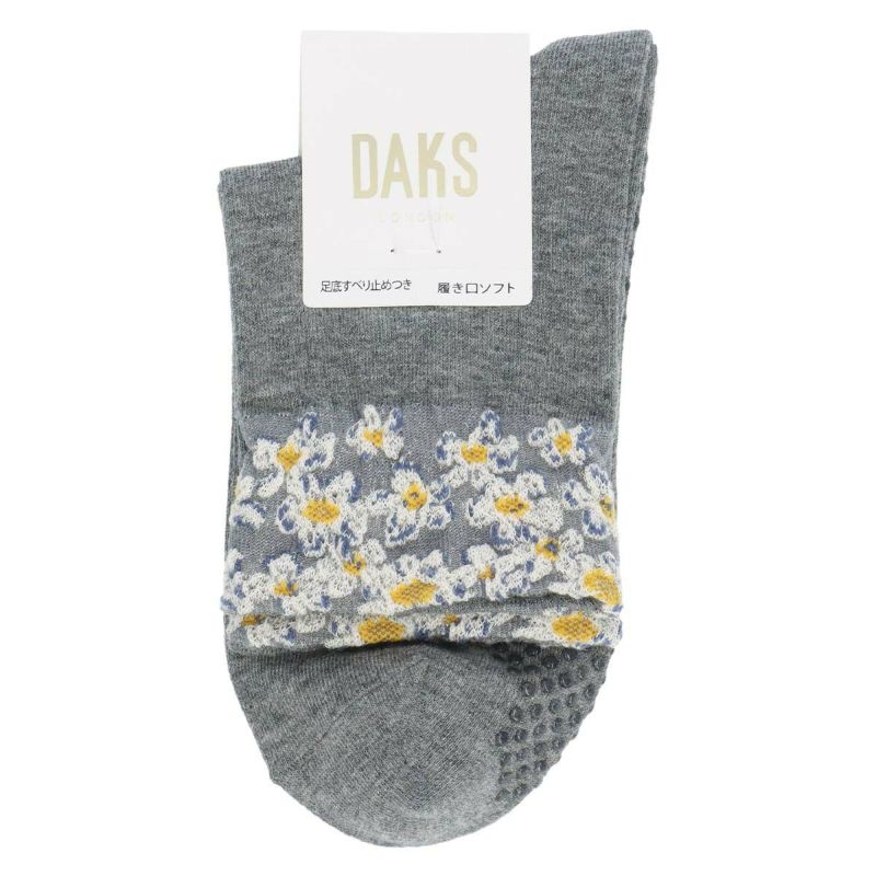 5. DAKS 履き口花柄フラット 綿混 足底滑り止め付き 日本製 クルー丈 ソックス レディース 03367365