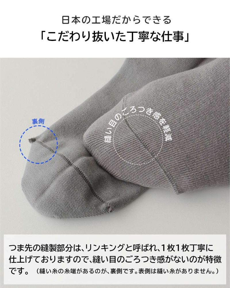 足裏のつま先部分には 触って分かる「サイズマーク」が付いていますので 目のご不自由がある方、お洗濯後に靴下のペアリングが面倒な方も 安心してお使いいただけます。