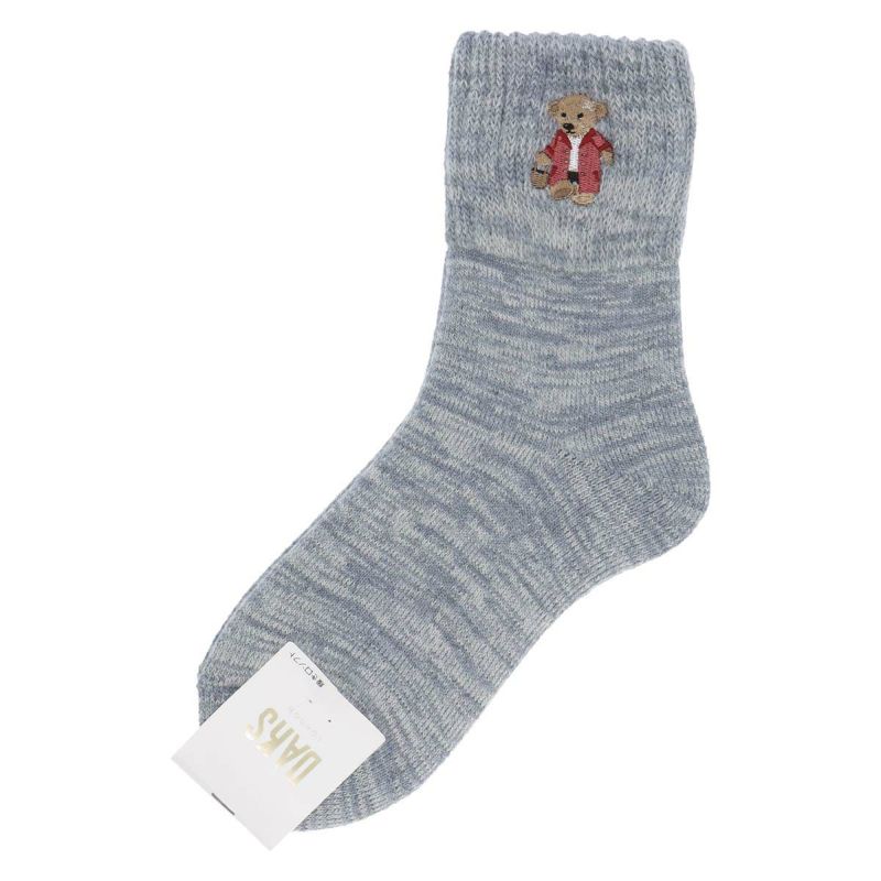 内側起毛・総パイルのあたたかいルームソックス。お散歩ベア刺繍のおしゃれなデザイン。