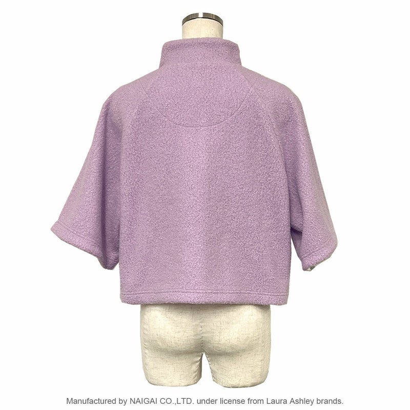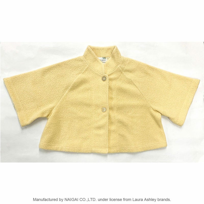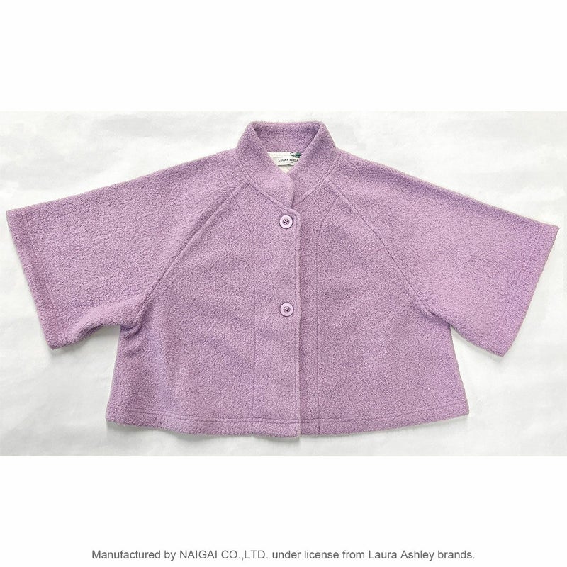 起床時、就寝前、就寝時、肌寒い時に羽織れるショート丈のボレロです。表面がくるくる、もこもこしているボアフリース素材。