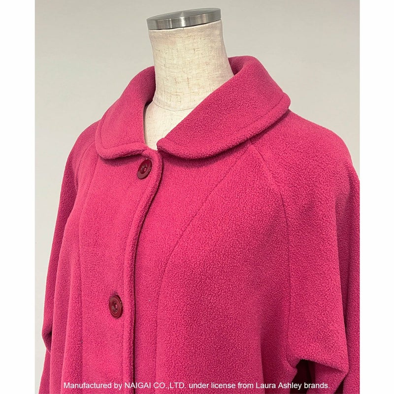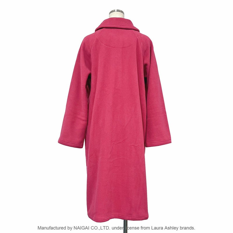 起床時、就寝前、就寝時、肌寒い時に羽織れるヒザまであるロング丈のガウンです。表面がくるくる、もこもこしているボアフリース素材。1枚仕立てで軽くて、裏起毛なのでふんわり暖かい。