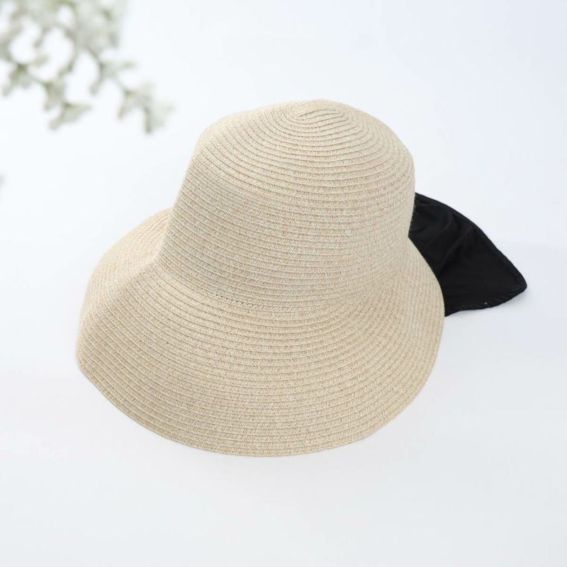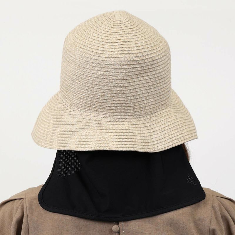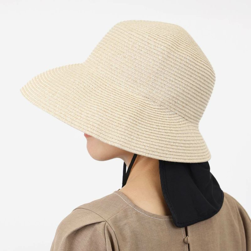 夏の強い日差しからしっかり守ってくれる、つば広めのたれ付きストローハット。