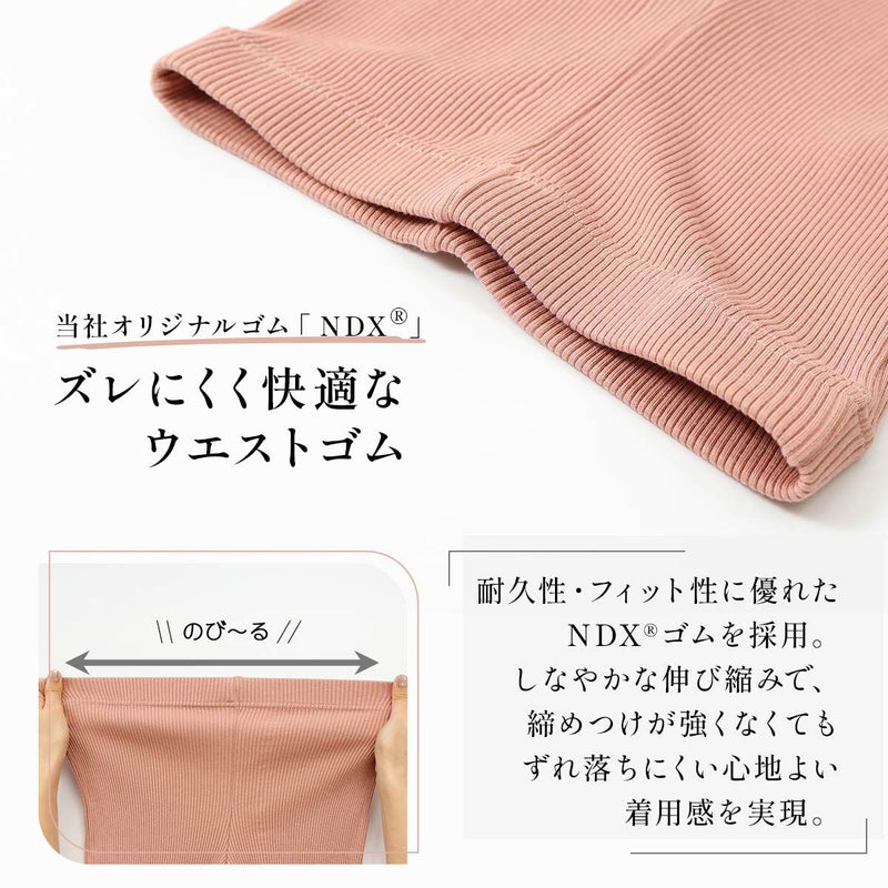 ・NDX®ゴム使用(しなやかな伸び縮みで、締めつけが強くなくてもずれ落ちにくい心地よい着用感を実現。さらに、耐洗濯性(洗剤・漂白剤に強い)や耐候性(光・オゾン)に優れ抜群の耐久性を誇ります。)
