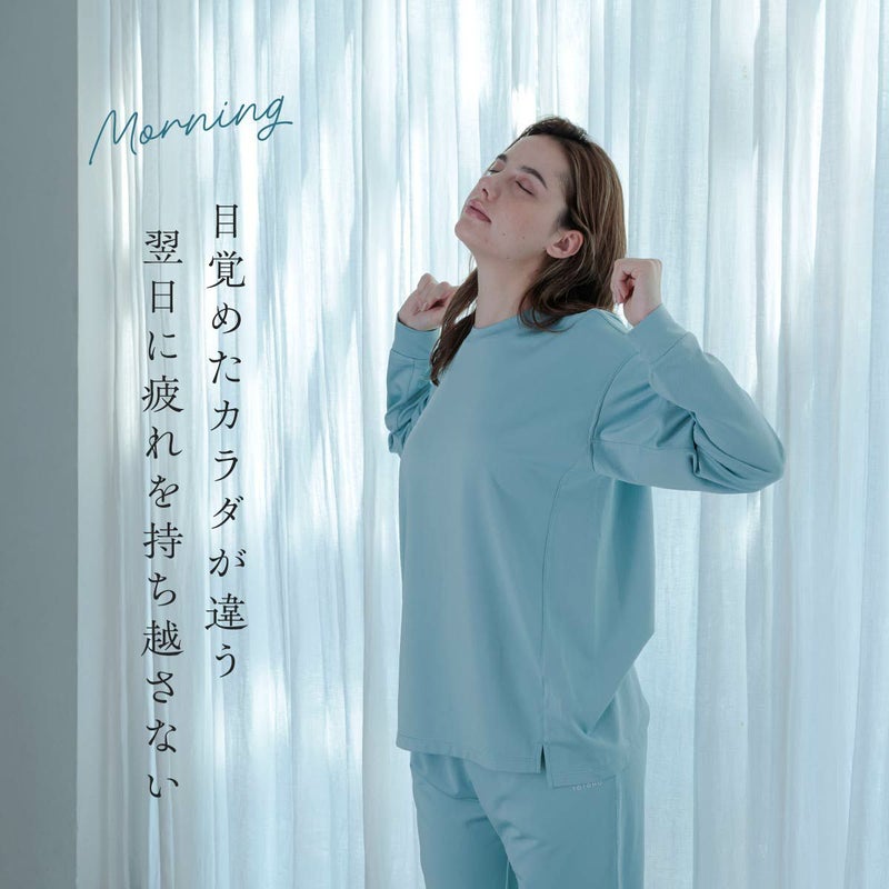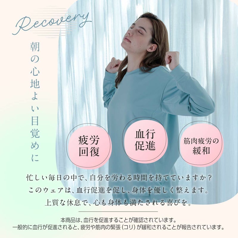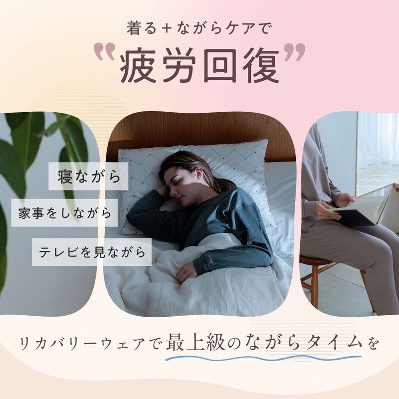 おうちでのリラックスタイムはもちろん、睡眠時や旅行中・運動後の疲労回復など、着て休める時にご着用ください。