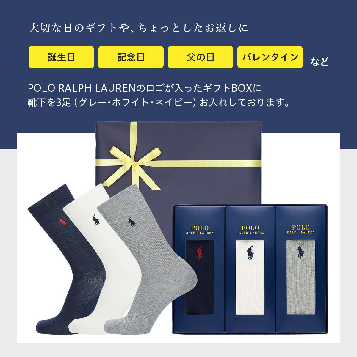 他の画像を見る 送料無料 3足組 ポロ ラルフ ローレン 公式ショップ 紳士 贈答用 靴下 POLO RALPH LAUREN 3足セット 手提げ紙袋付き ギフトセット 綿混 ワンポイント刺繍 無地リブ クルー丈 カジュアル ソックス メンズ 02092184 ( PLC-30-RB ) giftset 通常価格 ¥ 3,400 販売価格 ¥ 3,400 税込 詳細を見る お気に入りに登録する (0)