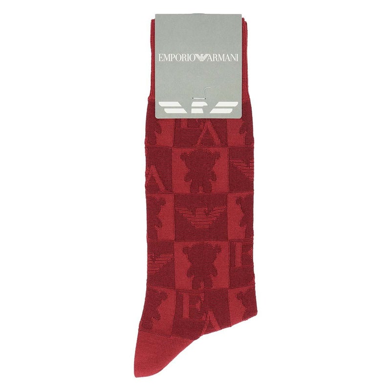 エンポリオ アルマーニ 紳士 靴下 公式ショップ EMPORIO ARMANI 綿混 ベア&EAリンクス柄 クルー丈 メンズ ソックス 日本製 02342387