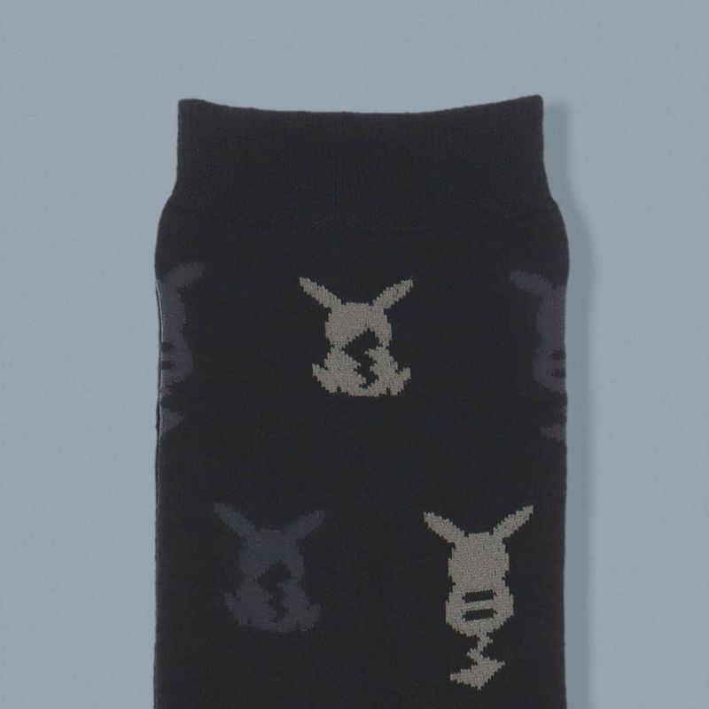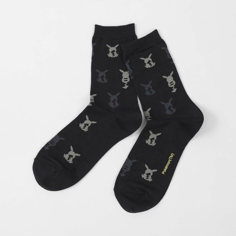 ピカチュウのポーズのシルエットが可愛らしい メンズ クルー丈 ソックス です。日常使いはもちろん、ポケモン好きの方へのプレゼントにもぴったりです。