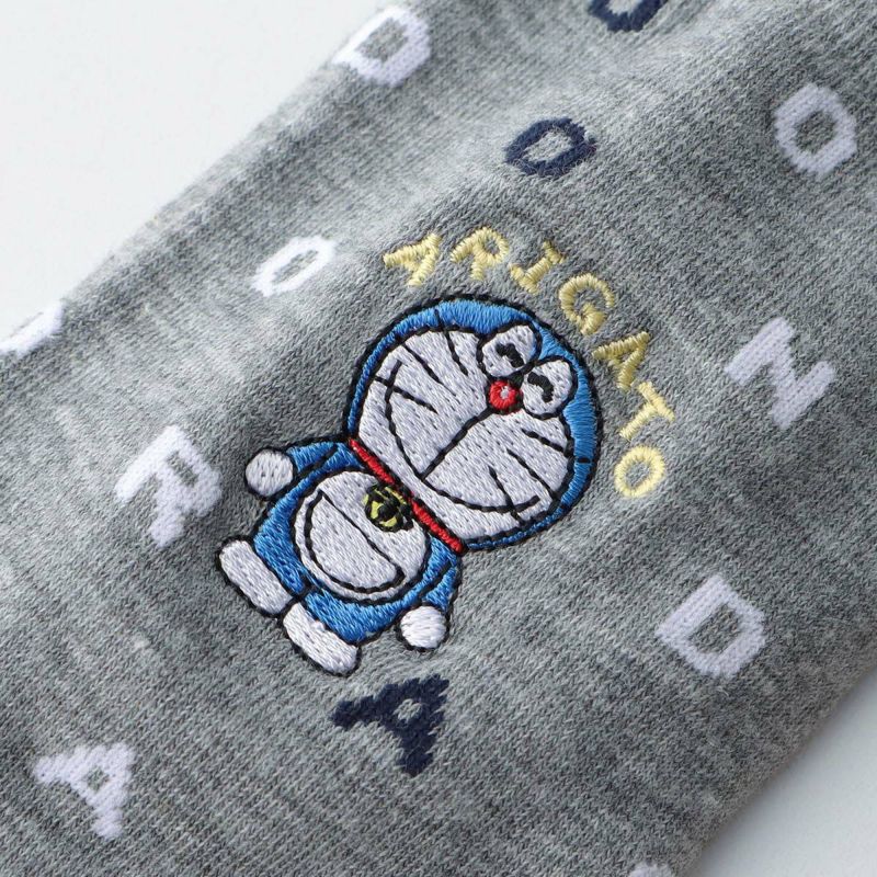 愛らしいドラえもんとARIGATOの文字が刺繍されたカジュアルソックスです。日常使いはもちろん、プレゼントにも最適です。