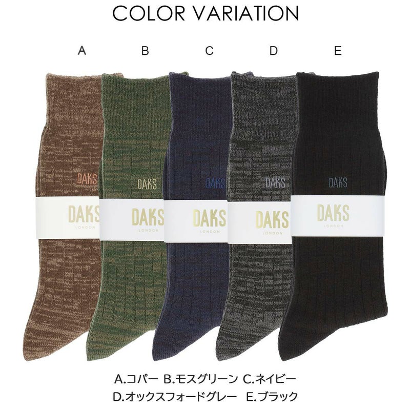 5. DAKS 毛混 アクリルウール リブ DAKS刺繍 クルー丈 カジュアルソックス メンズ 日本製 02515050