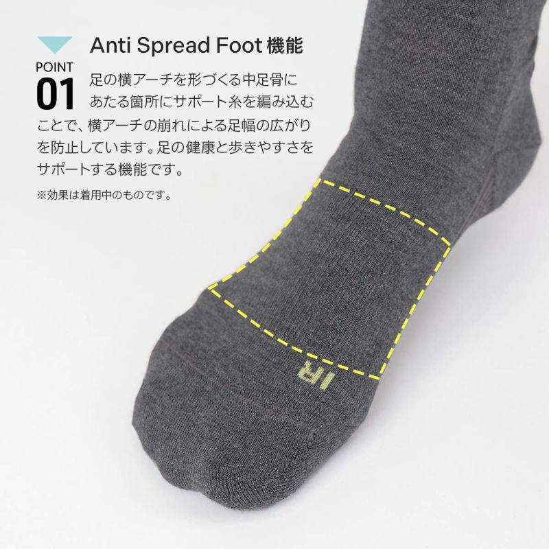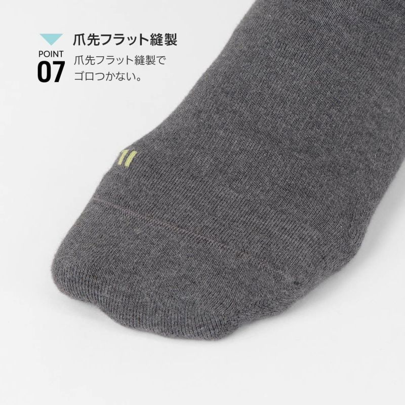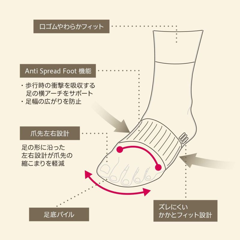 横アーチを支える特殊構造が毎日の歩きやすさをサポート。足幅の広がりを感じる方におすすめのソックスです。