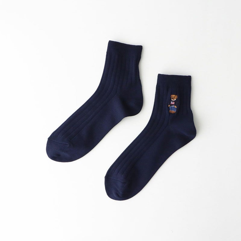 5. POLO RALPH LAUREN ポロベアワンポイント リブソックス ミドルショート丈 消臭加工 刺繍入り メンズ 02022250