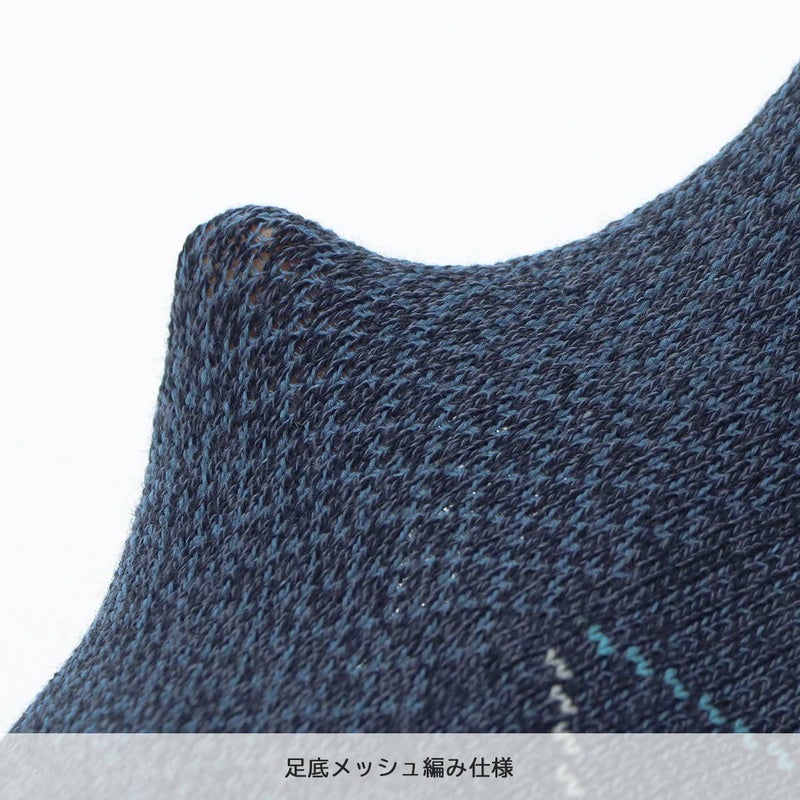 履き口ゆったりらくらく、涼感・オーガニック綿麻混、足底メッシュ編み