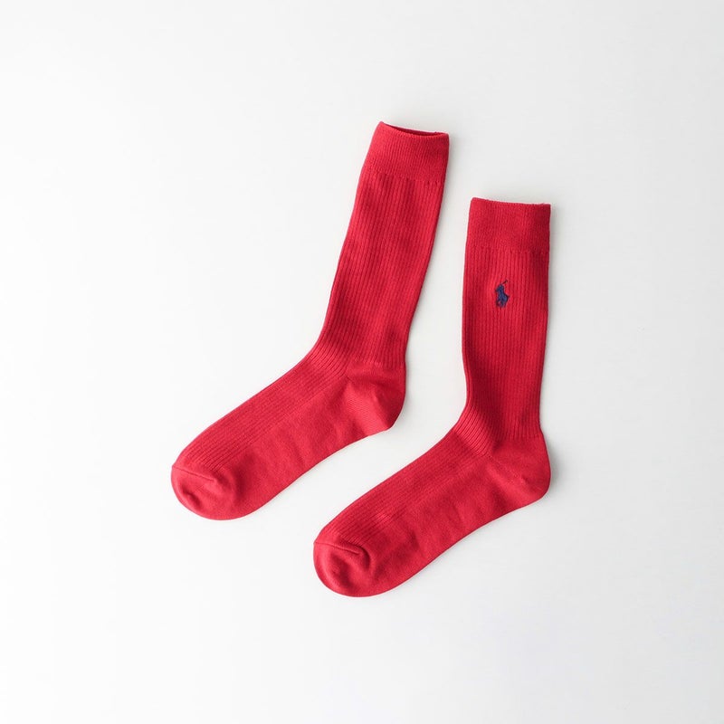 5. POLO RALPH LAUREN 消臭加工 綿混 ワンポイント刺繍 リブ クルー丈 メンズソックス 【22-24cm】 【24-26cm】【26-28cm】 02032303