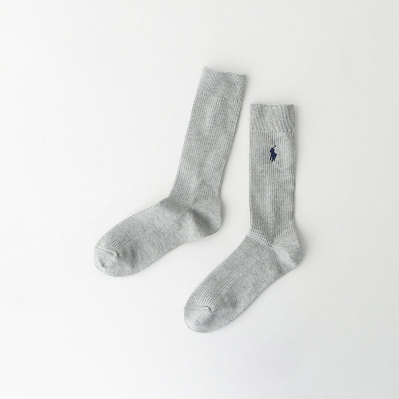 7. POLO RALPH LAUREN 消臭加工 綿混 ワンポイント刺繍 リブ クルー丈 メンズソックス 【22-24cm】 【24-26cm】【26-28cm】 02032303