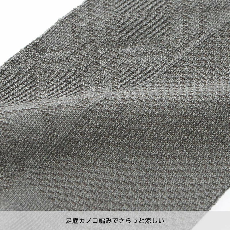 抗菌防臭加工、消臭加工、エクステンドヒール(かかとをしっかりホールドするのでズレにくい)、さわやかな肌ざわりの強撚糸使用、足底カノコ編みでさらっと涼しい