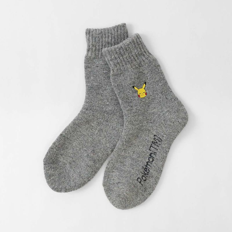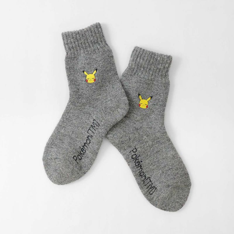 ピカチュウ が刺繍された内側起毛素材のあったか メンズ ルームソックス です。