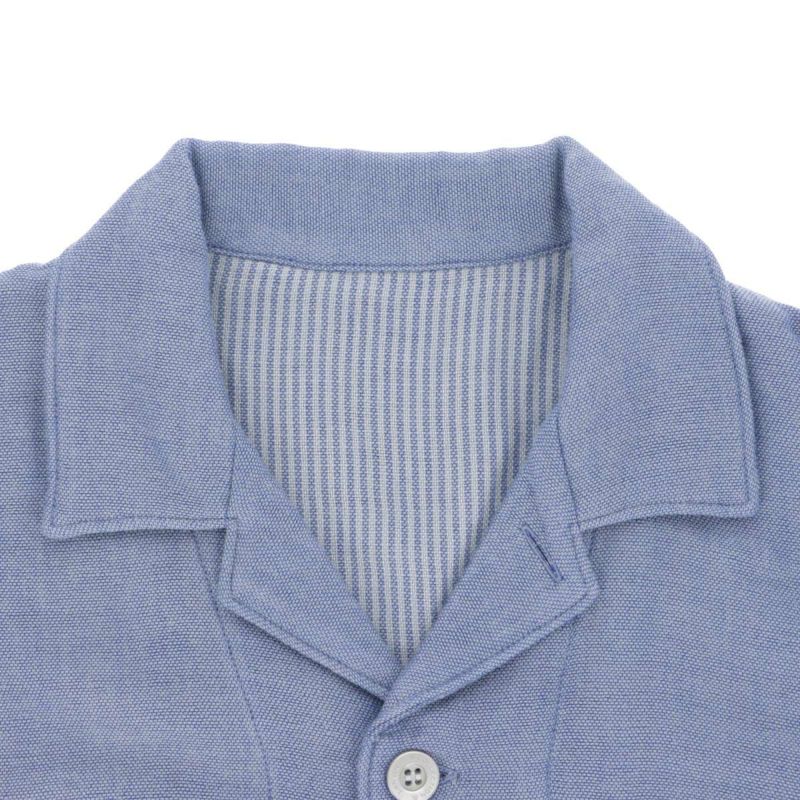 表面は色糸とグレーでシャンブレーに仕上げ、アクセントで裏面にストライプが施されています。