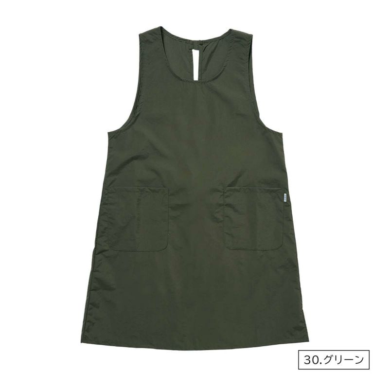 後ろで結ぶタイプのため、フィット感を調整しやすく、さまざまな体型に対応可能です。左右に便利なポケットも付いています。