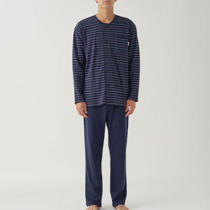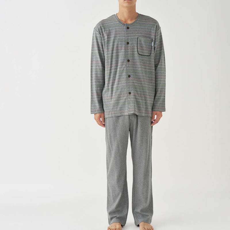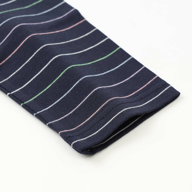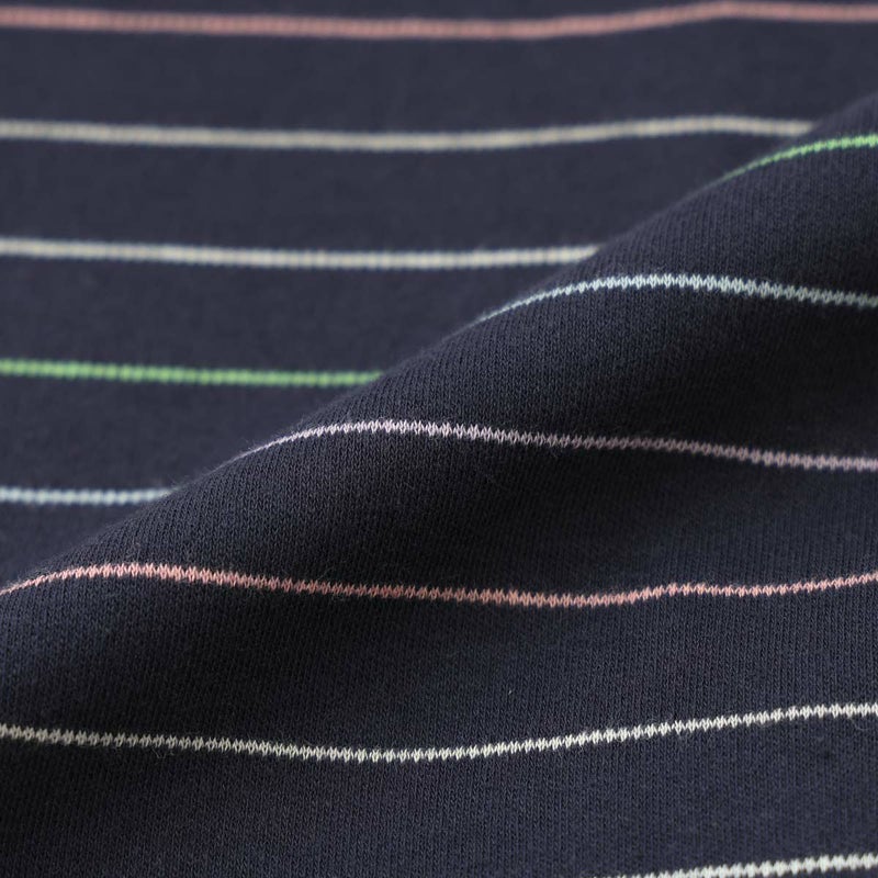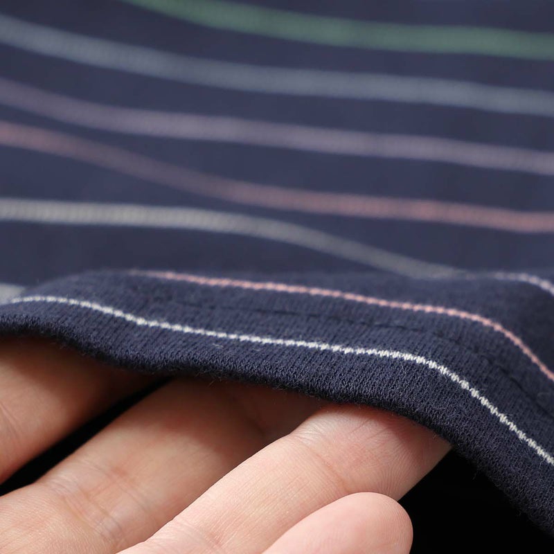 年間定番として活躍する前あきタイプのエスポワールボーダー。お部屋着を意識したベーシックなデザインとカラーリングの30スムース素材。少し寒さを感じる季節におすすめな、薄手~中肉くらいの厚さの生地です。