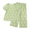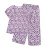 半袖 8分丈パンツの上下セット。ステンドグラスのような透明感のある幾何学柄プリントです。長め半袖に部屋着感覚のワイドパンツが特徴的なスタイルのかぶりものパジャマです。