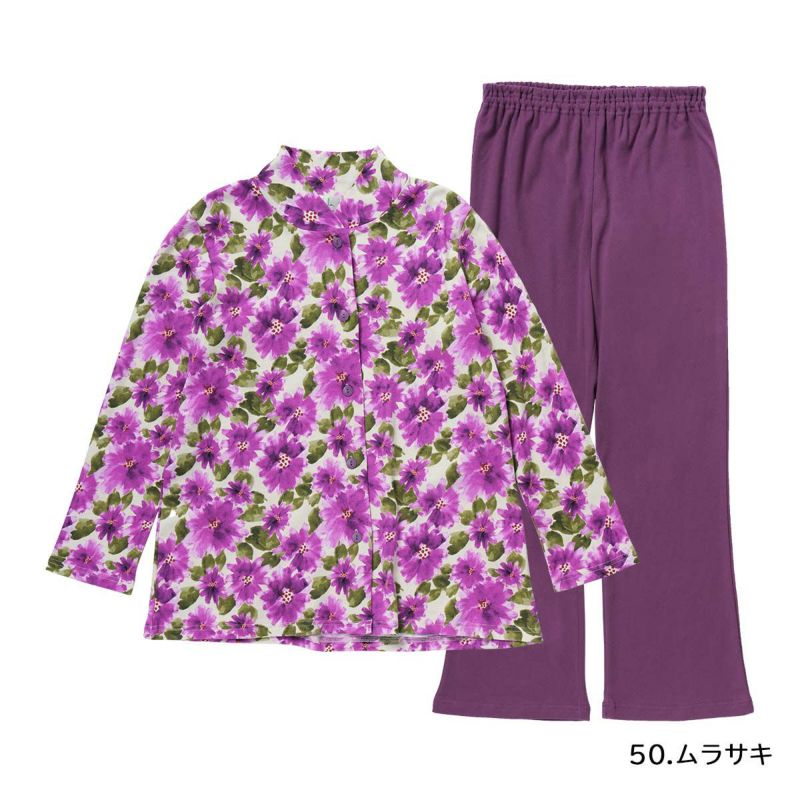 30スムース 微起毛 前ボタン、長袖パジャマ