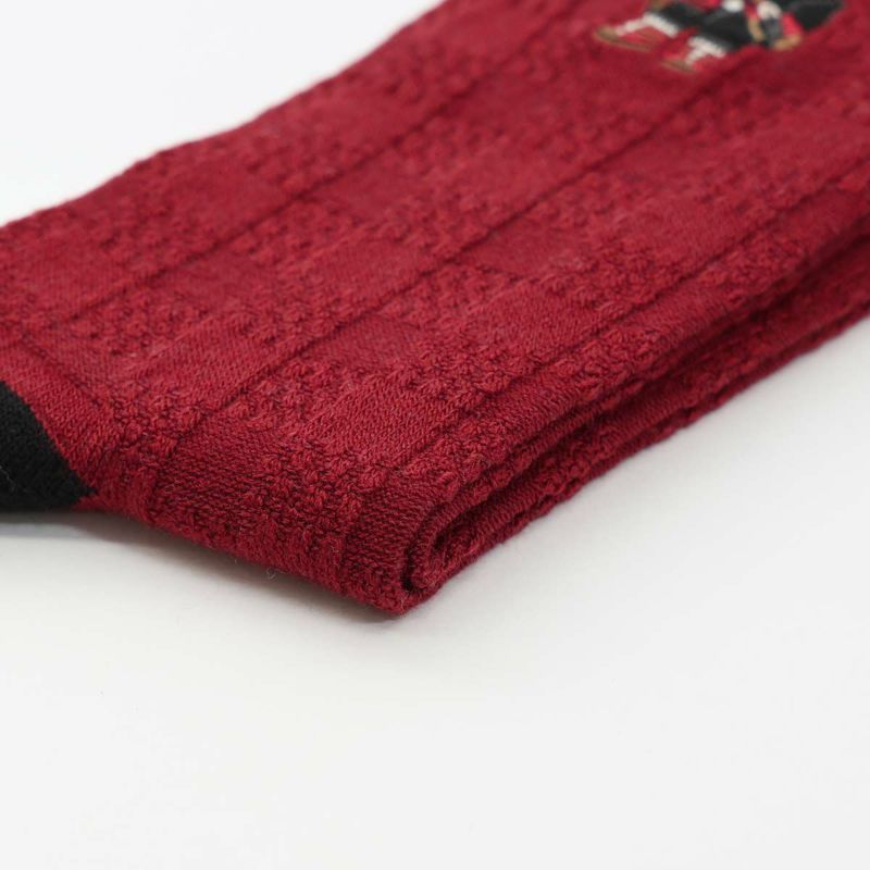 上品なチェック柄に、アイコニックなベアが刺繍された遊び心あふれるデザインソックスで、足元にユニークな存在感を演出します。