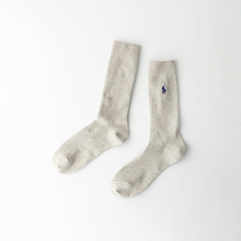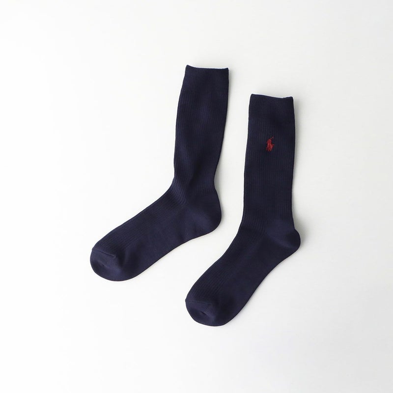 5. POLO RALPH LAUREN 消臭加工 リブ ポロポニー刺しゅう ワンポイント 特大寸 大きいサイズ クルー丈 ソックス【28-30cm】02032313