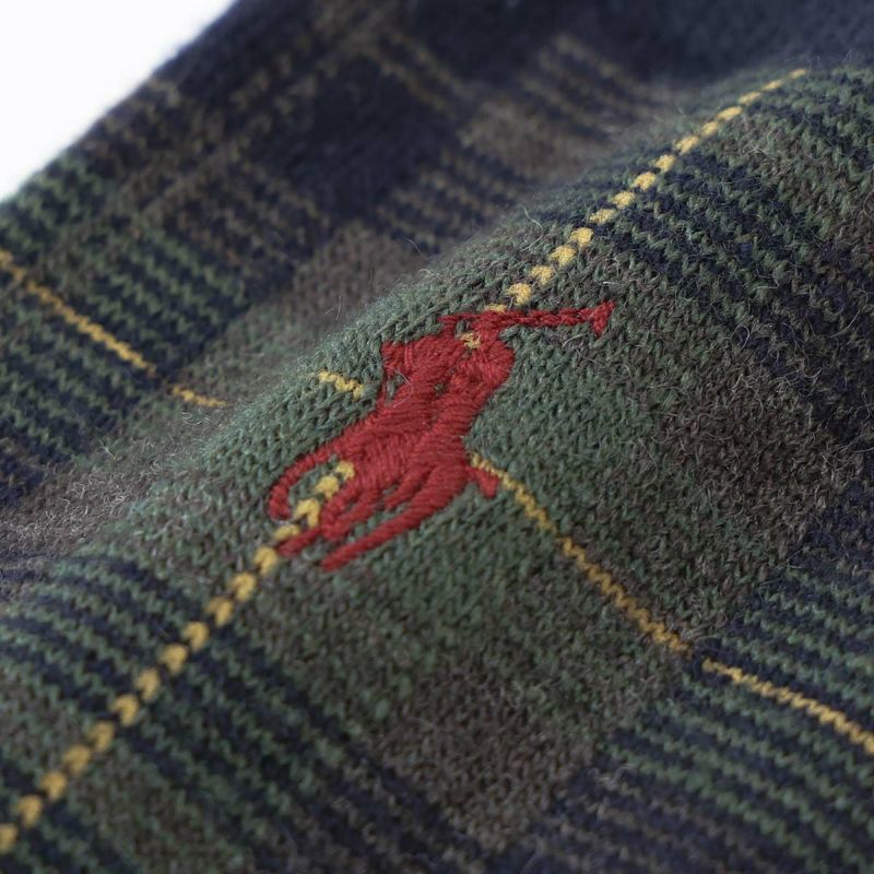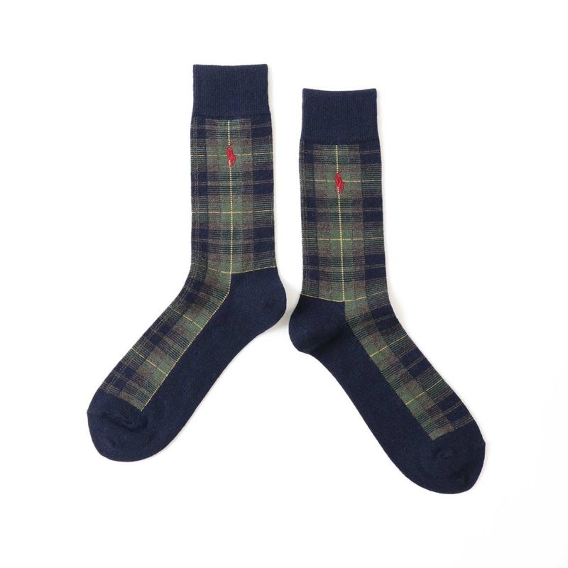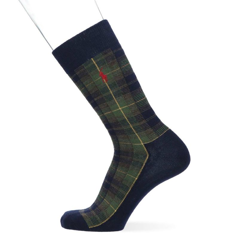 5. POLO RALPH LAUREN カシミヤ混 フラットベッド ゴードン タータンチェック ポロポニー刺しゅう クルー丈 ビジネス カジュアル 日本製 メンズ ソックス 02041005