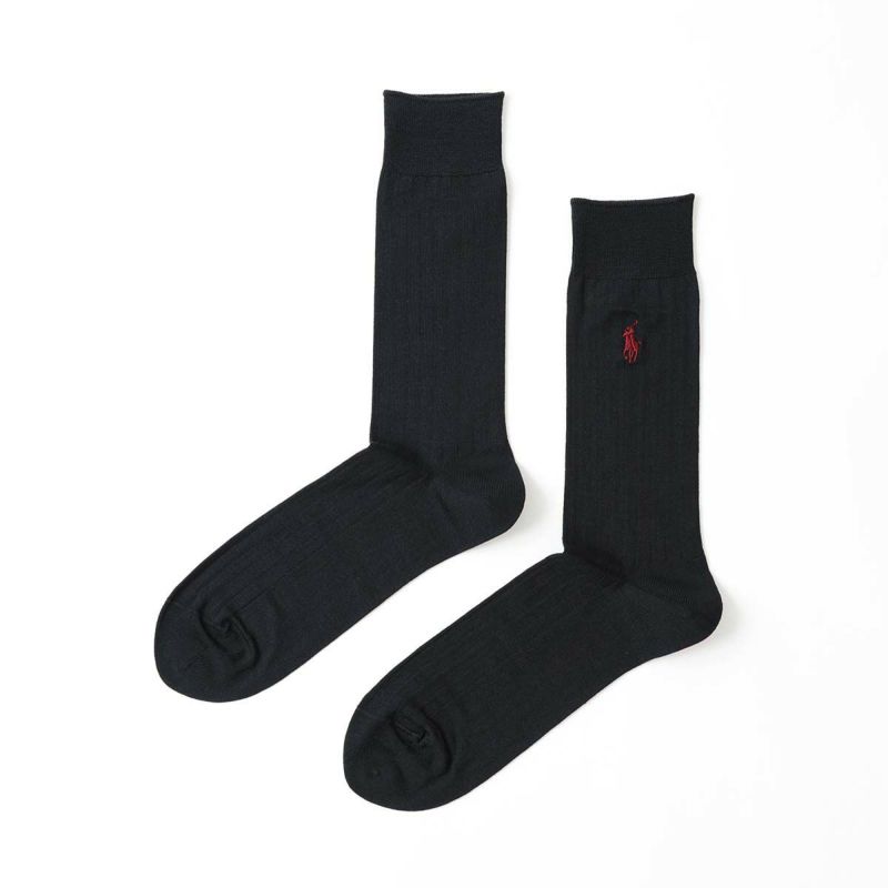 5. POLO RALPH LAUREN 抗菌防臭 10×1リブ ビジネスソックス ワンポイント クルー丈 メンズ 02042370